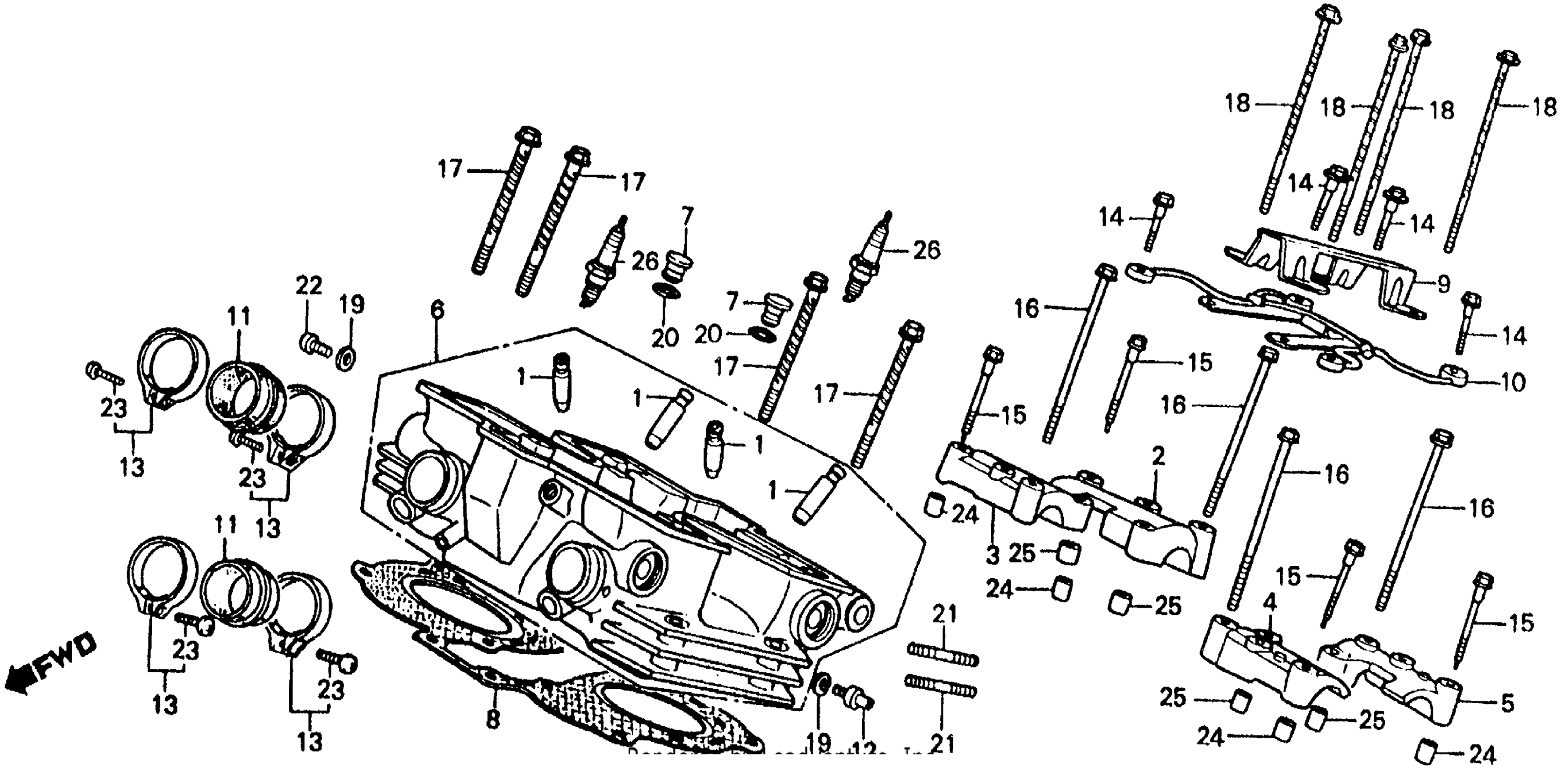 HEAD, RR. | Use up to Engine SN 2107767 This part replaces 12220-MJ8-020.