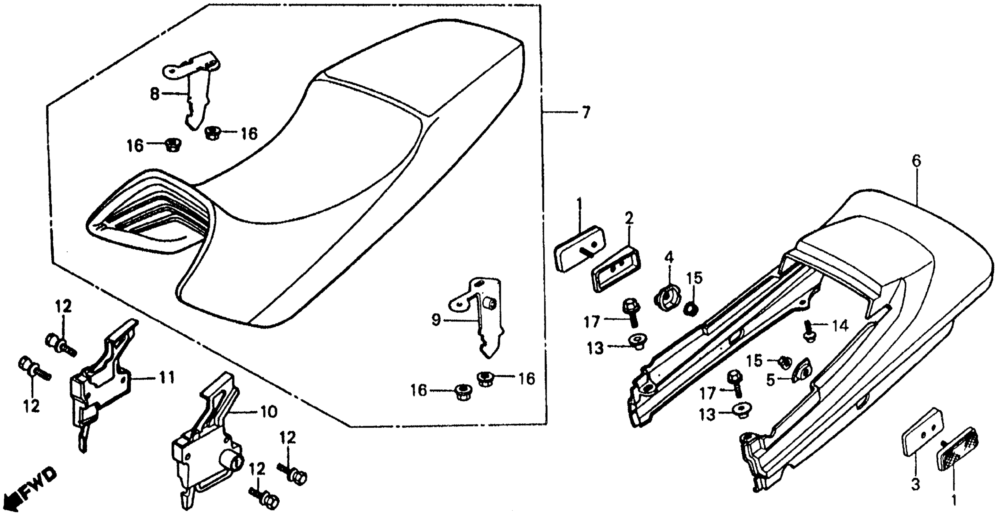 Honda VF500FA (85) 500 INTERCEPTOR, JPN, VIN# JH2PC120-FM100001 TO JH2PC120-FM107254 SEAT + REAR COWL Diagram