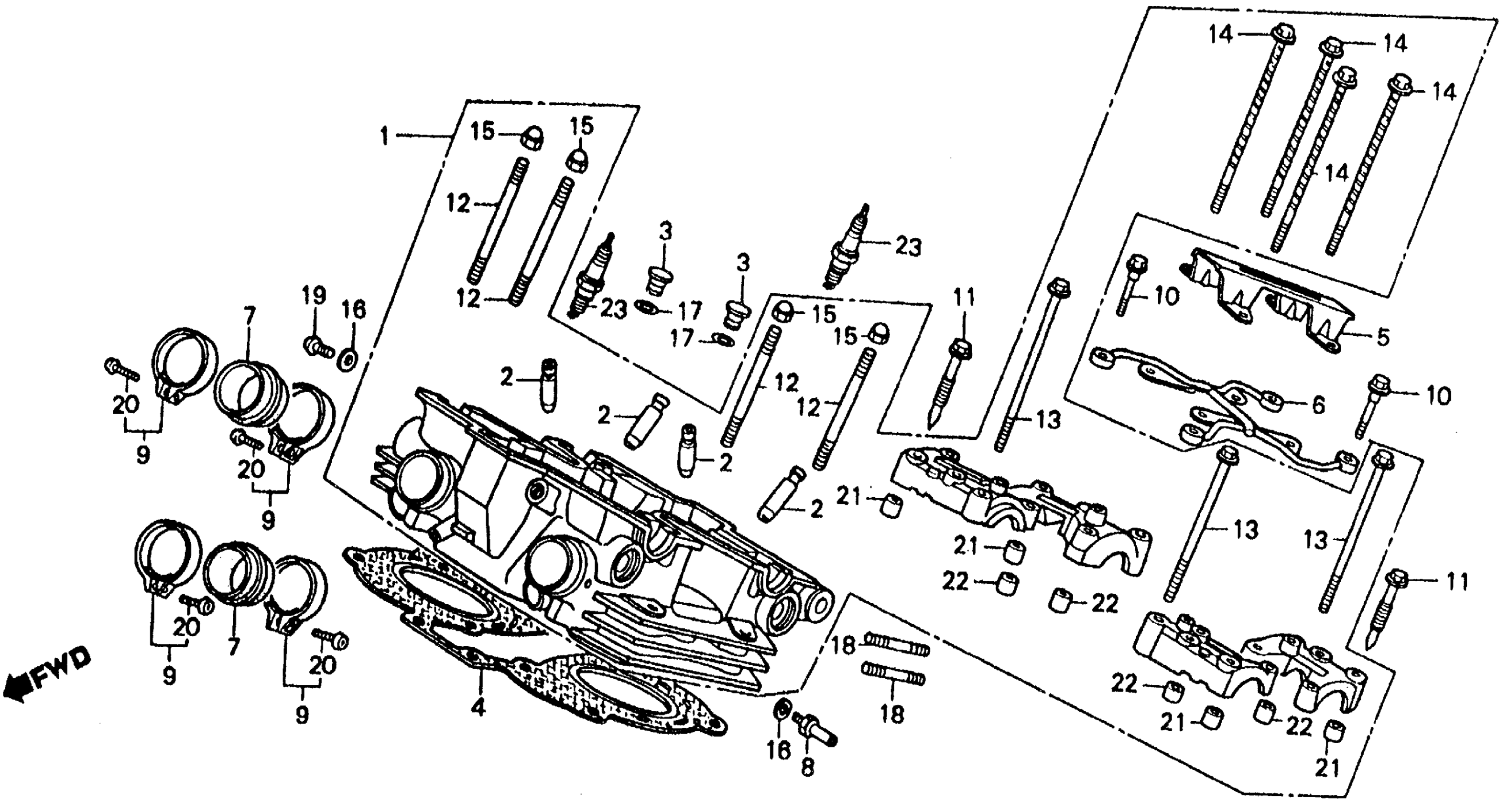 Honda VF500FA (86) 500 INTERCEPTOR, JPN, VIN# JH2PC120-GM200001 TO JH2PC120-GM202293 REAR CYLINDER HEAD II Diagram