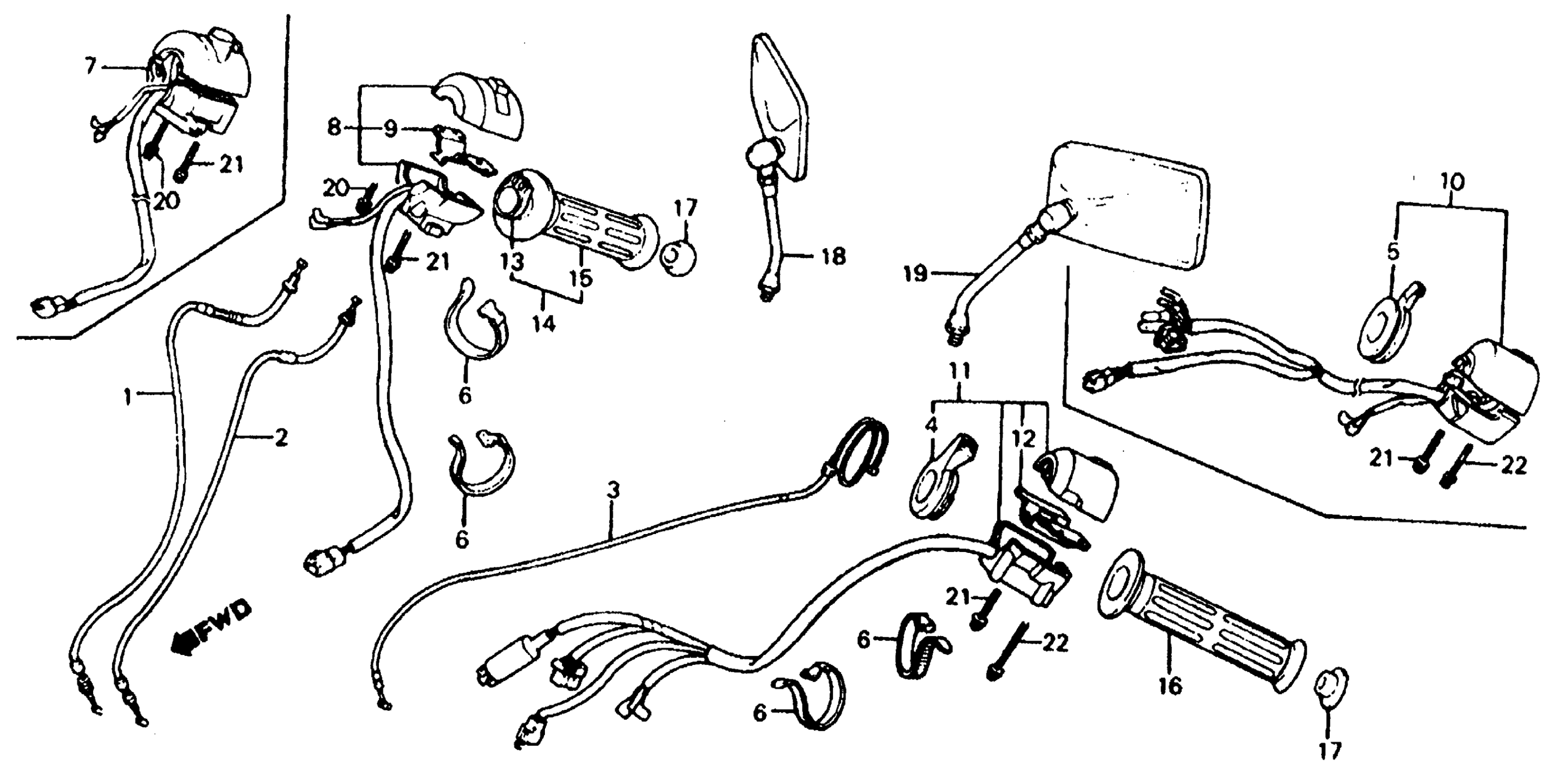 Honda VF700CA (85) MAGNA, JPN, VIN# JH2RC210-FM100006 TO JH2RC210-FM108900 SWITCHES + CABLES Diagram