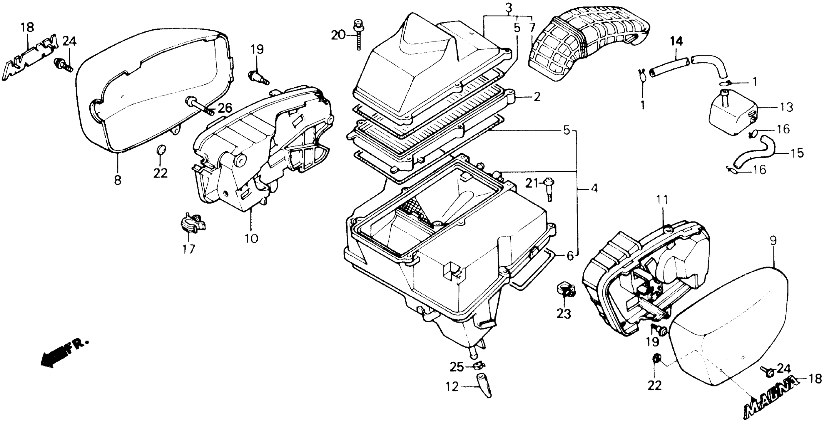 Honda VF700CA (87) MAGNA, USA, VIN# 1HFRC210-HA305001 TO 1HFRC210-HA310415 AIR CLEANER Diagram