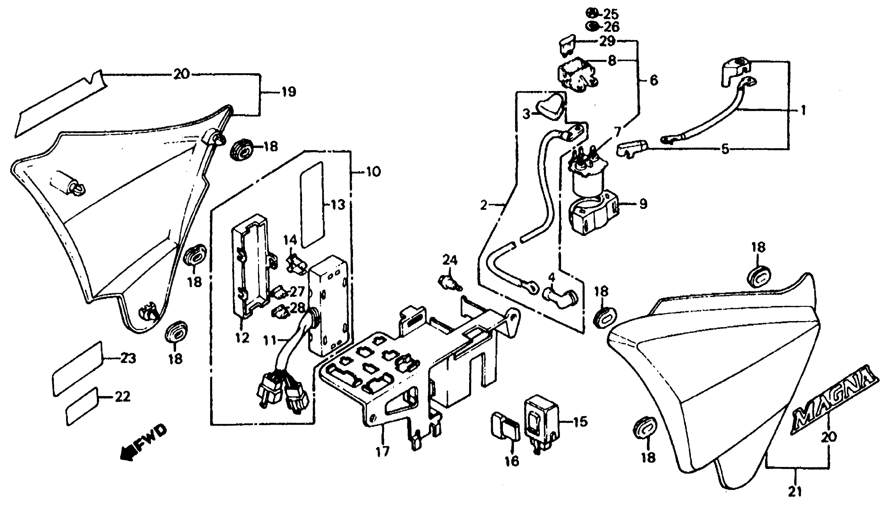 Honda VF700CAC (86) MAGNA, JPN, VIN# JH2RC211-GM200001 TO JH2RC211-GM201250 SIDE COVER 85-86 Diagram