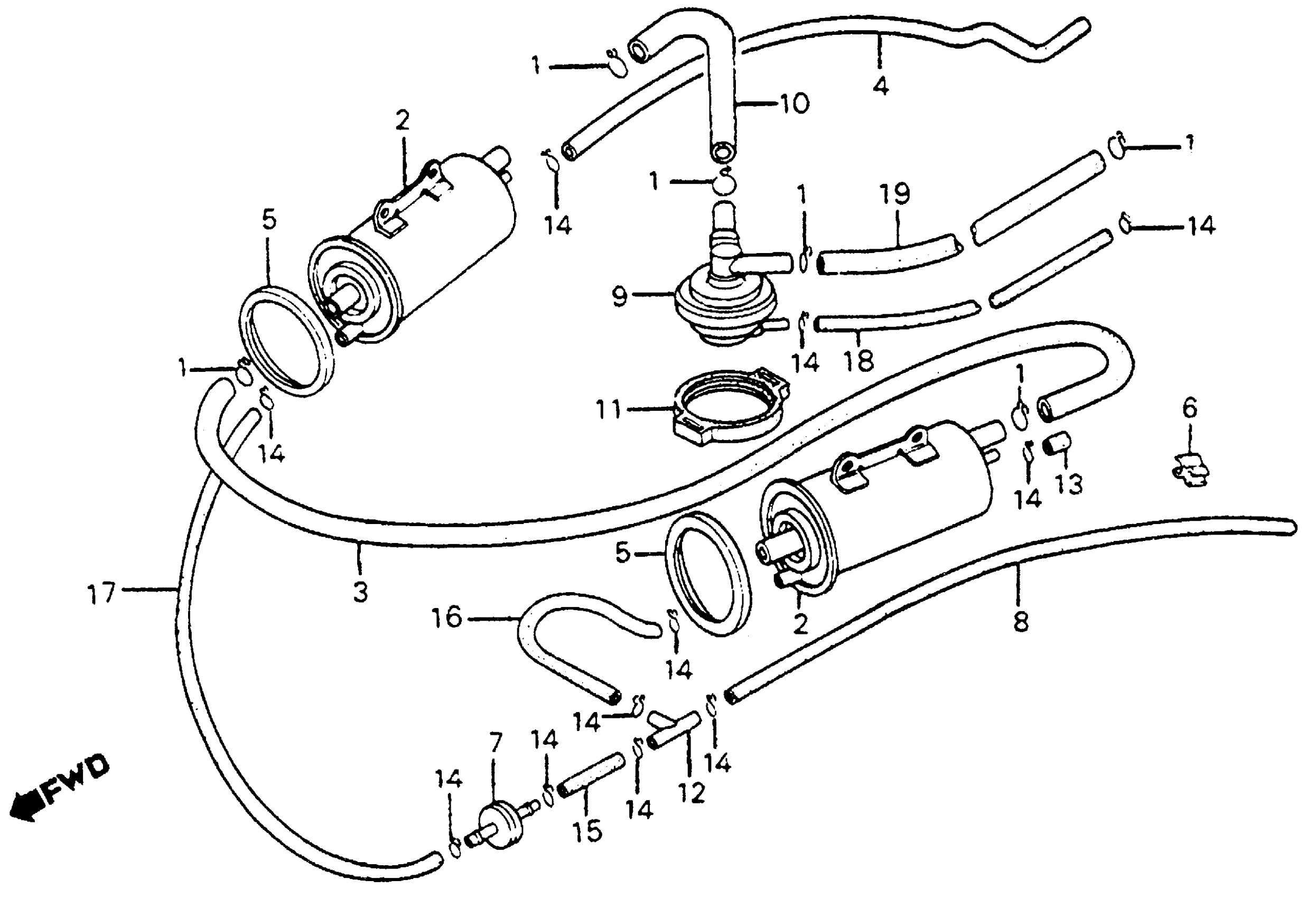 Honda VF700FAC (85) INTERCEPTOR, JPN, VIN# JH2RC231-FM100004 TO JH2RC231-FM101500 CANISTER (AC) + PURGE CONTROL VALVE (AC) Diagram