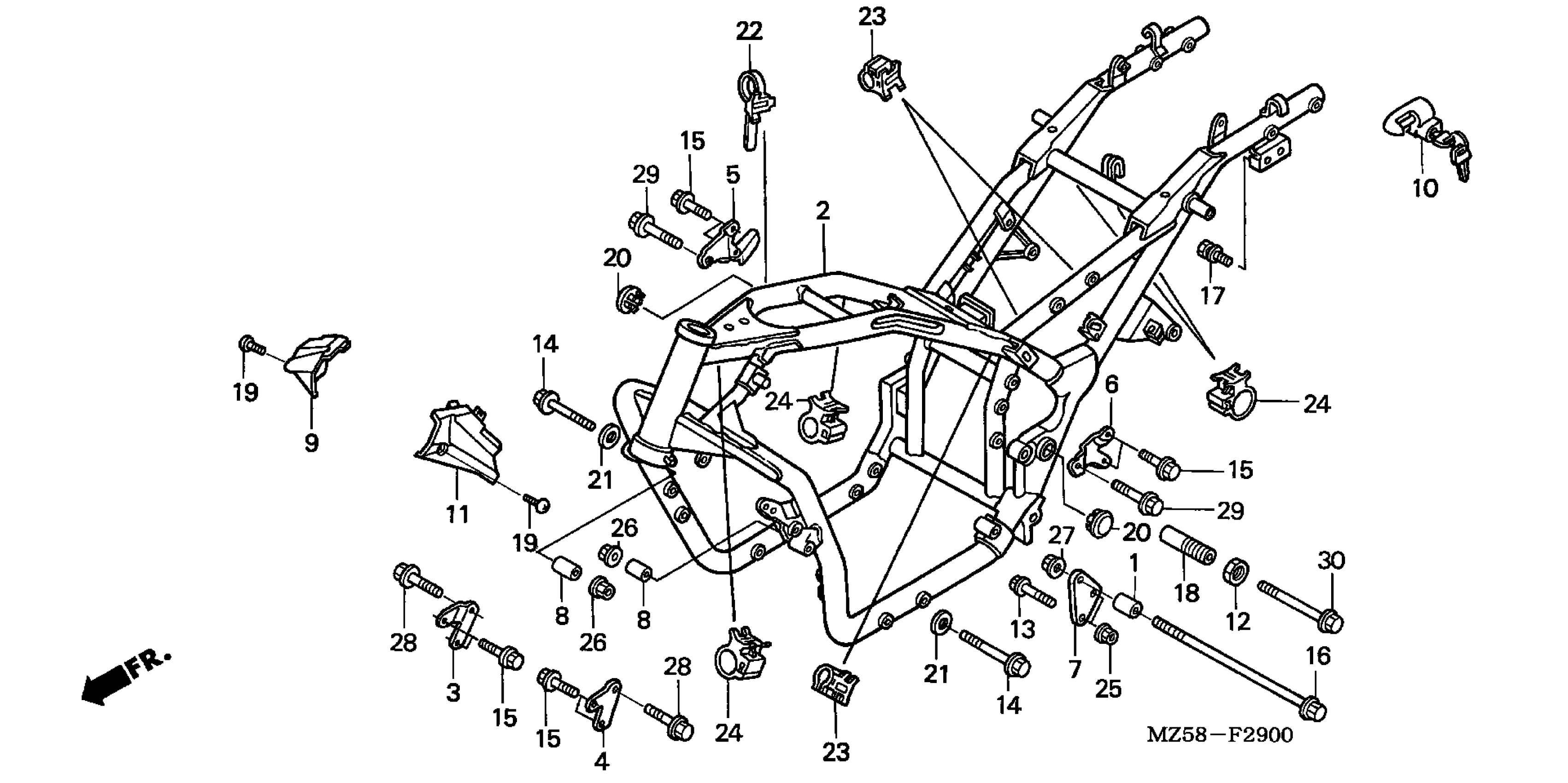 Honda VF750CA (03) MAGNA, JPN, VIN# JH2RC430-3M900001 FRAME Diagram