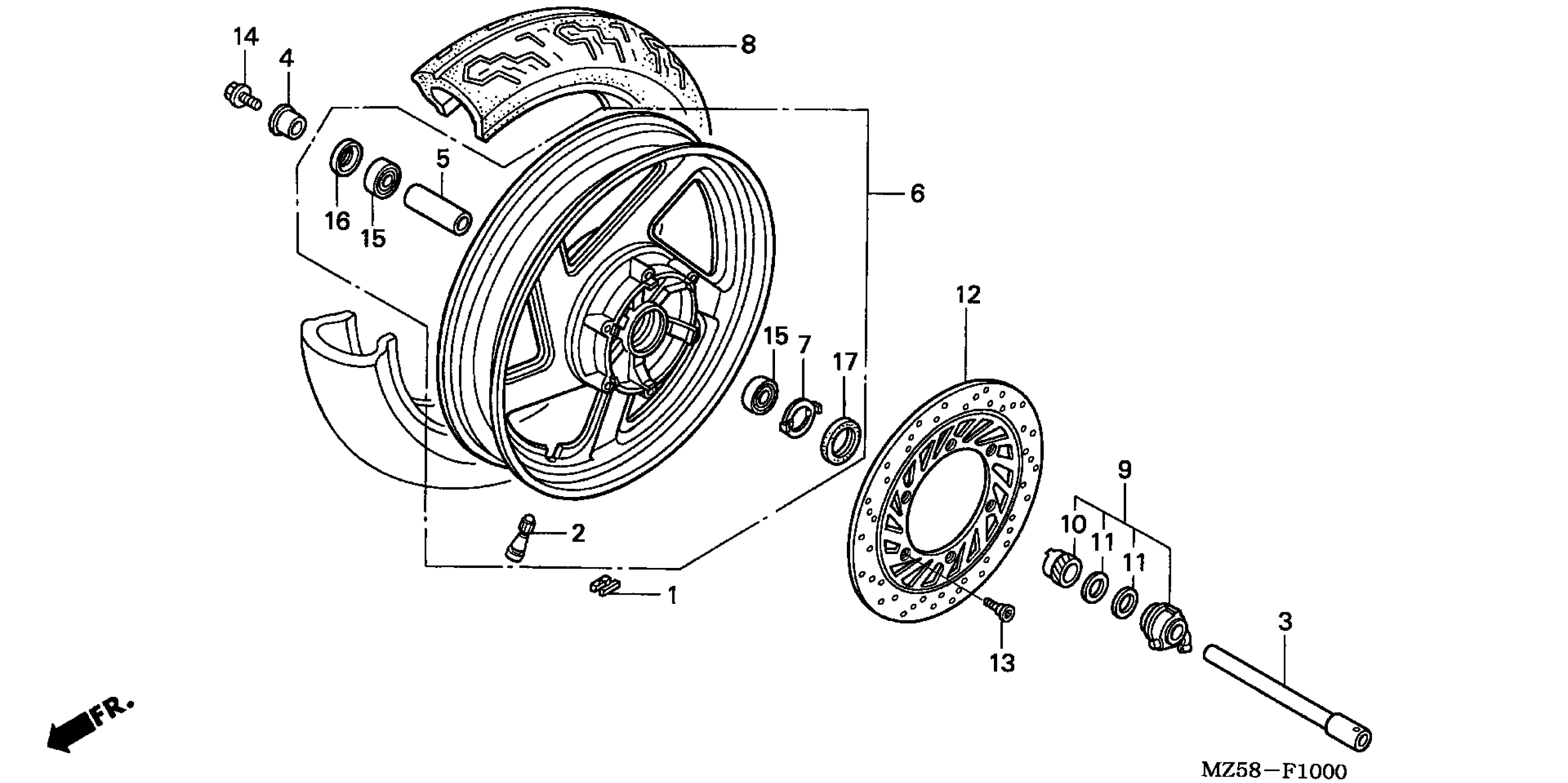 Honda VF750CA (03) MAGNA, JPN, VIN# JH2RC430-3M900001 FRONT WHEEL Diagram