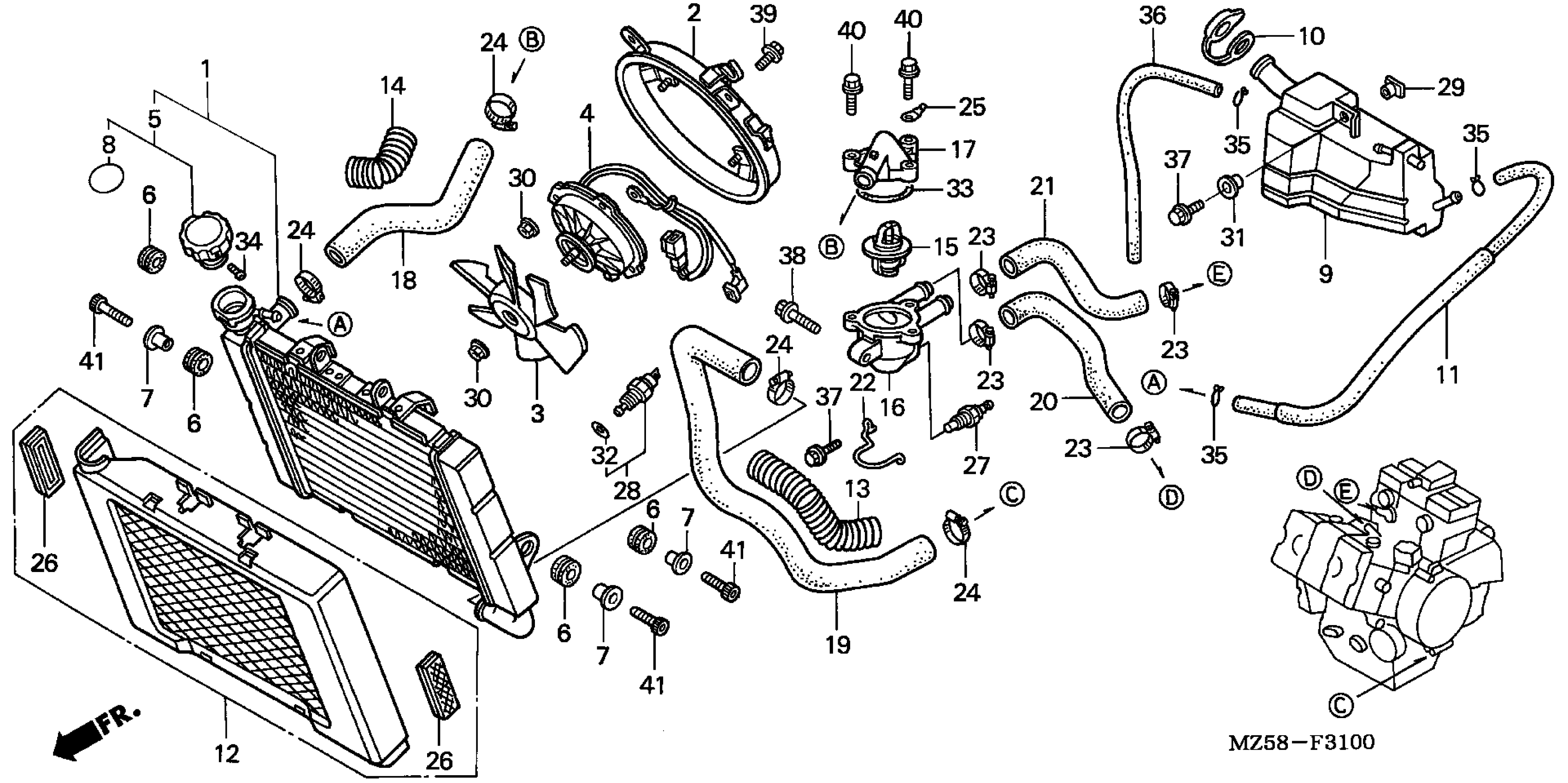Honda VF750CA (03) MAGNA, JPN, VIN# JH2RC430-3M900001 RADIATOR Diagram