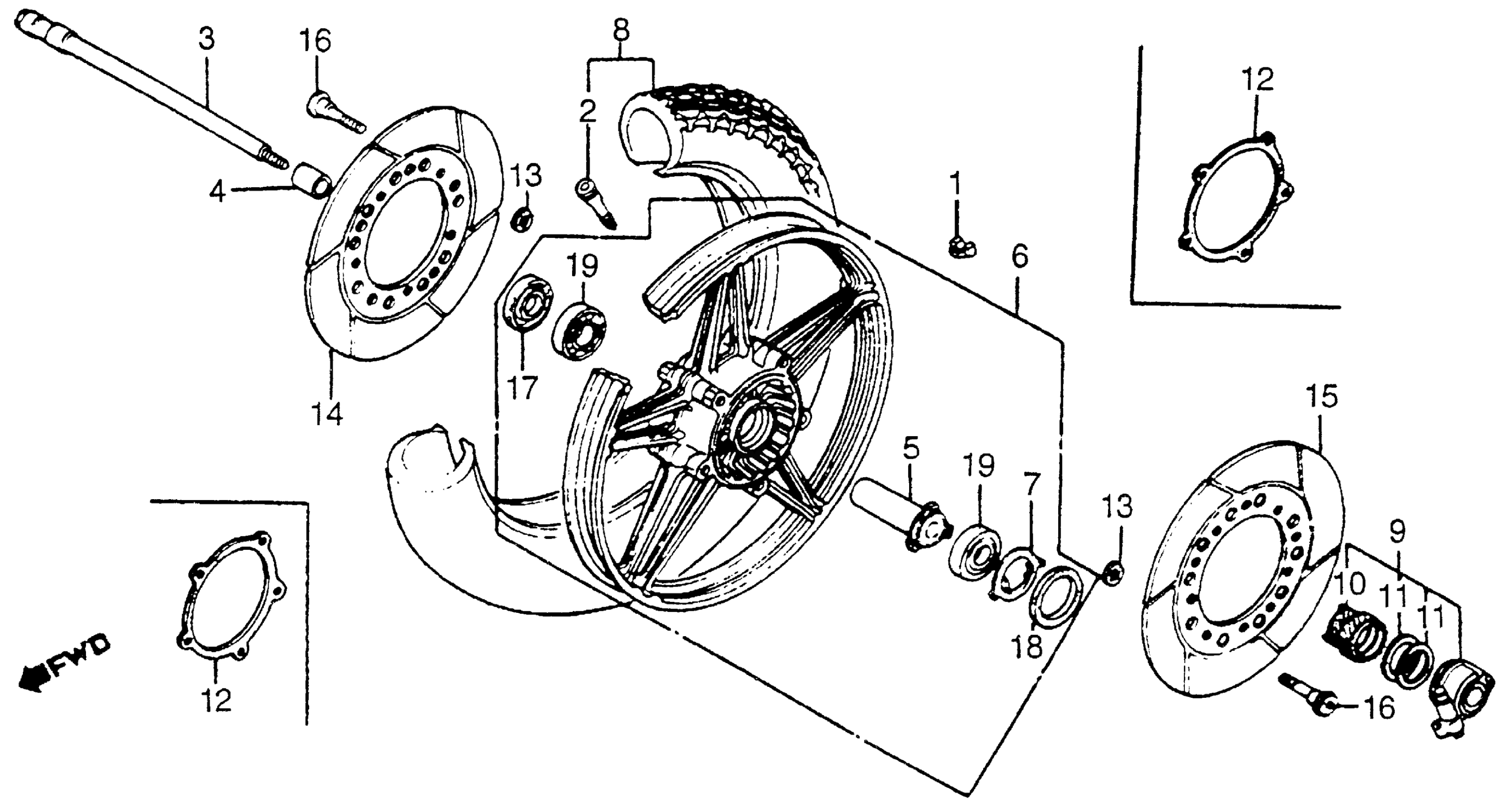 Honda VF750CA (83) V45 MAGNA, JPN, VIN# JH2RC071-DM100011 TO JH2RC071-DM122819 FRONT WHEEL Diagram