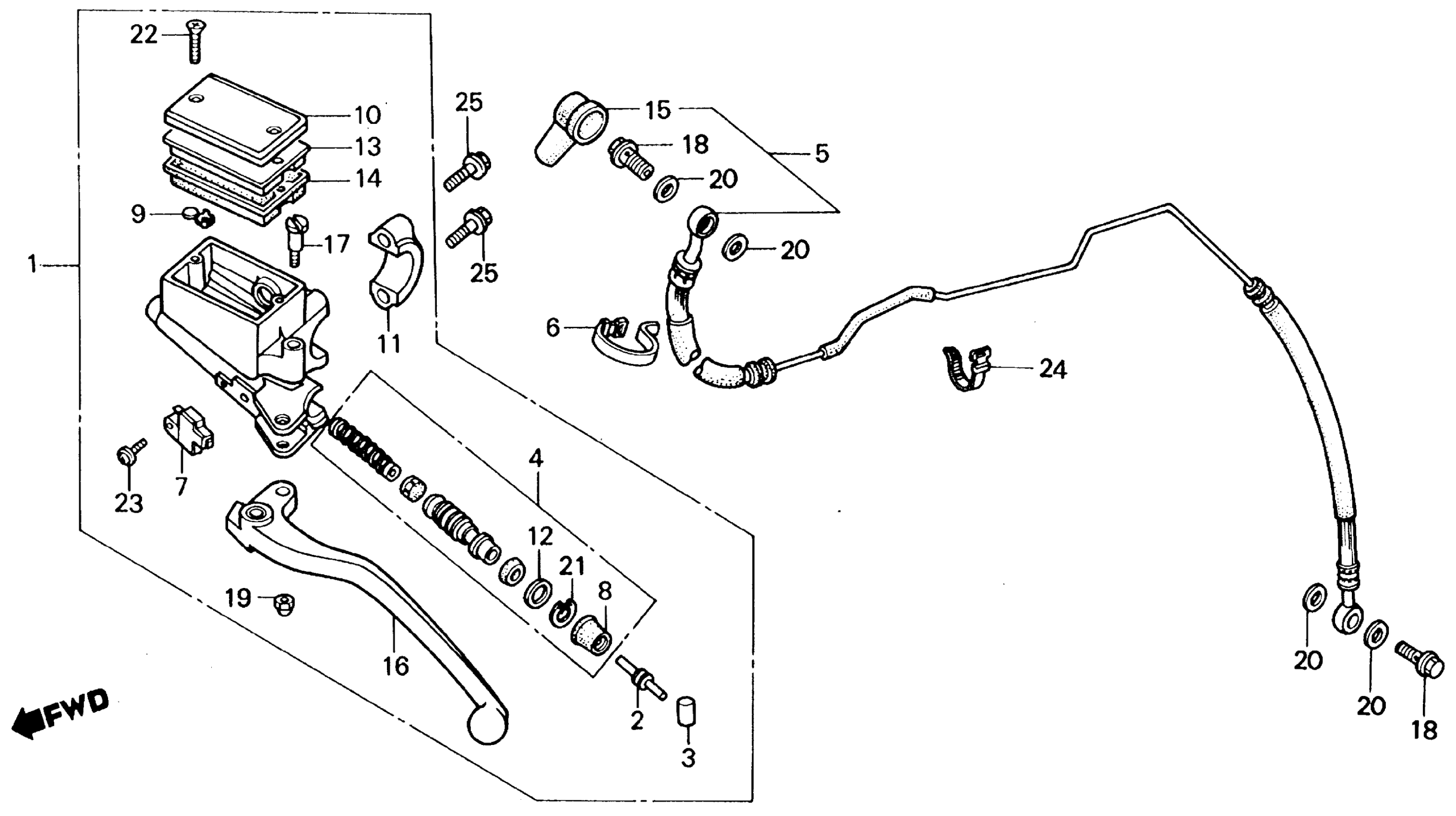 Honda VF750CA (88) V45 MAGNA, USA, VIN# 1HFRC280-JA100001 CLUTCH MASTER CYLINDER Diagram