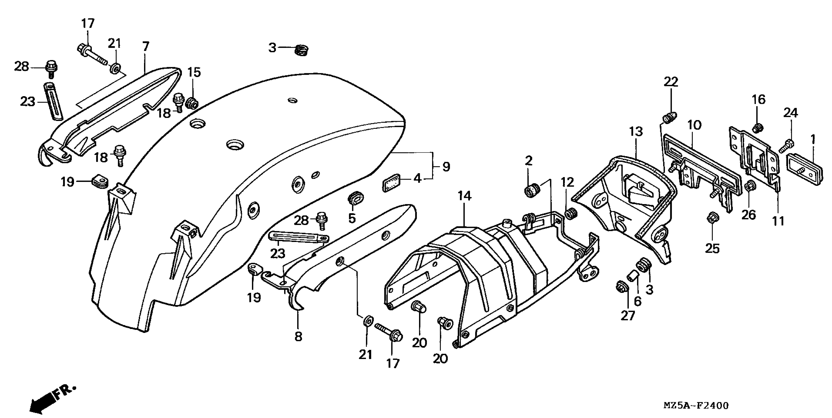 Honda VF750CA (99) MAGNA, JPN, VIN# JH2RC430-XM500001 REAR FENDER Diagram