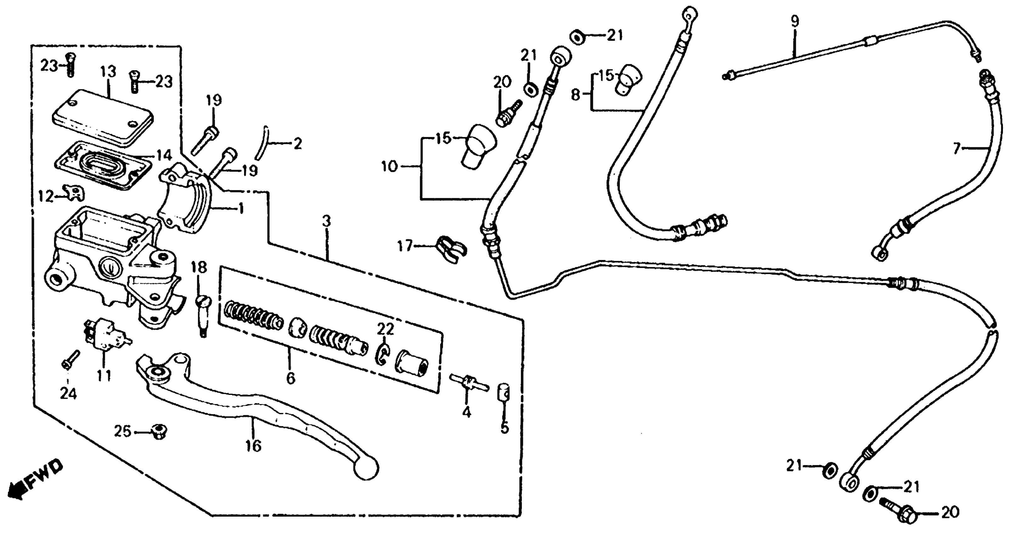 Honda VF750SA (82) V45 SABRE, JPN, VIN# JH2RC070-CM000036 TO JH2RC070-CM012083 CLUTCH MASTER CYLINDER Diagram