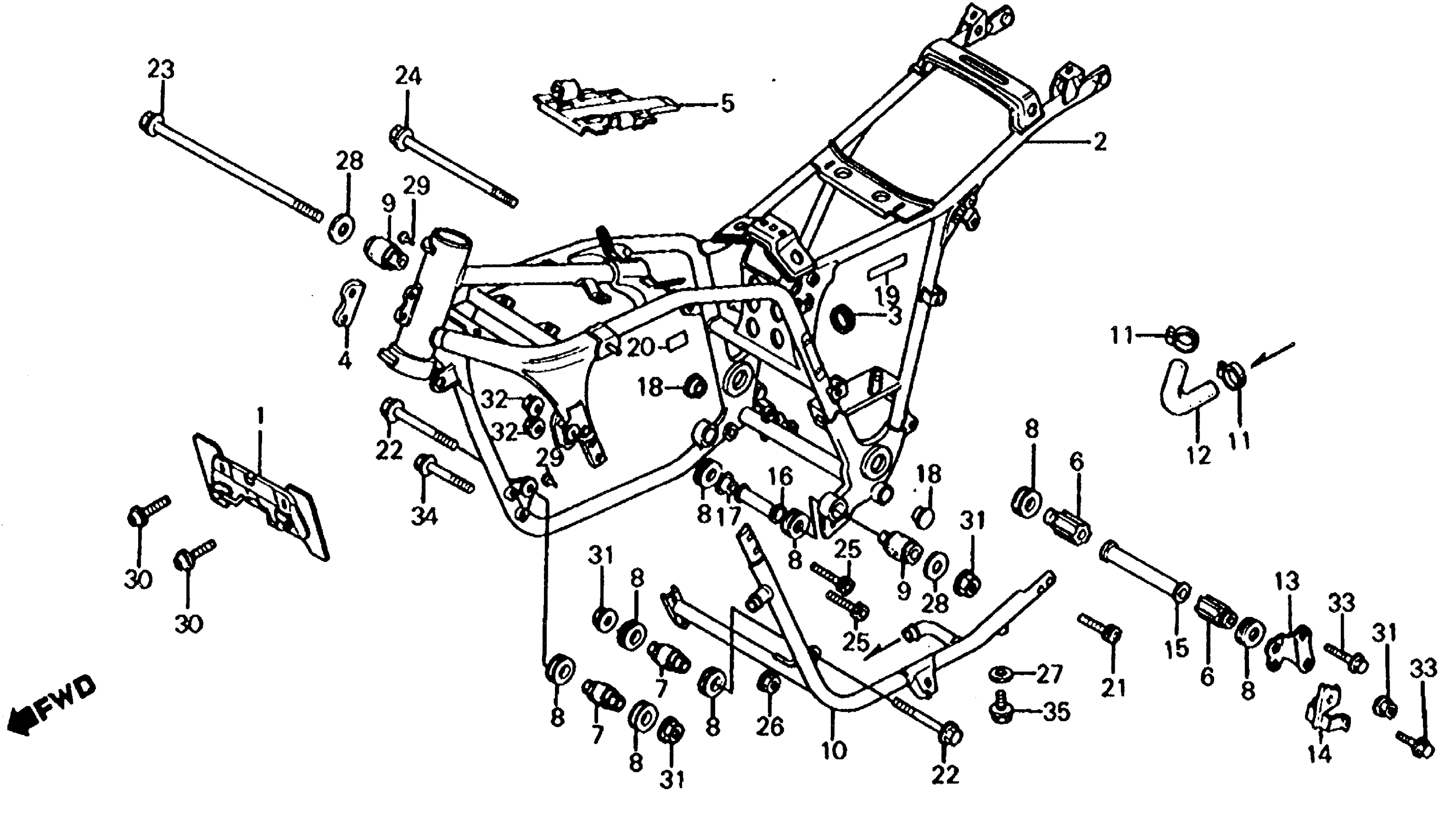 Honda VF750SA (82) V45 SABRE, JPN, VIN# JH2RC070-CM000036 TO JH2RC070-CM012083 FRAME Diagram