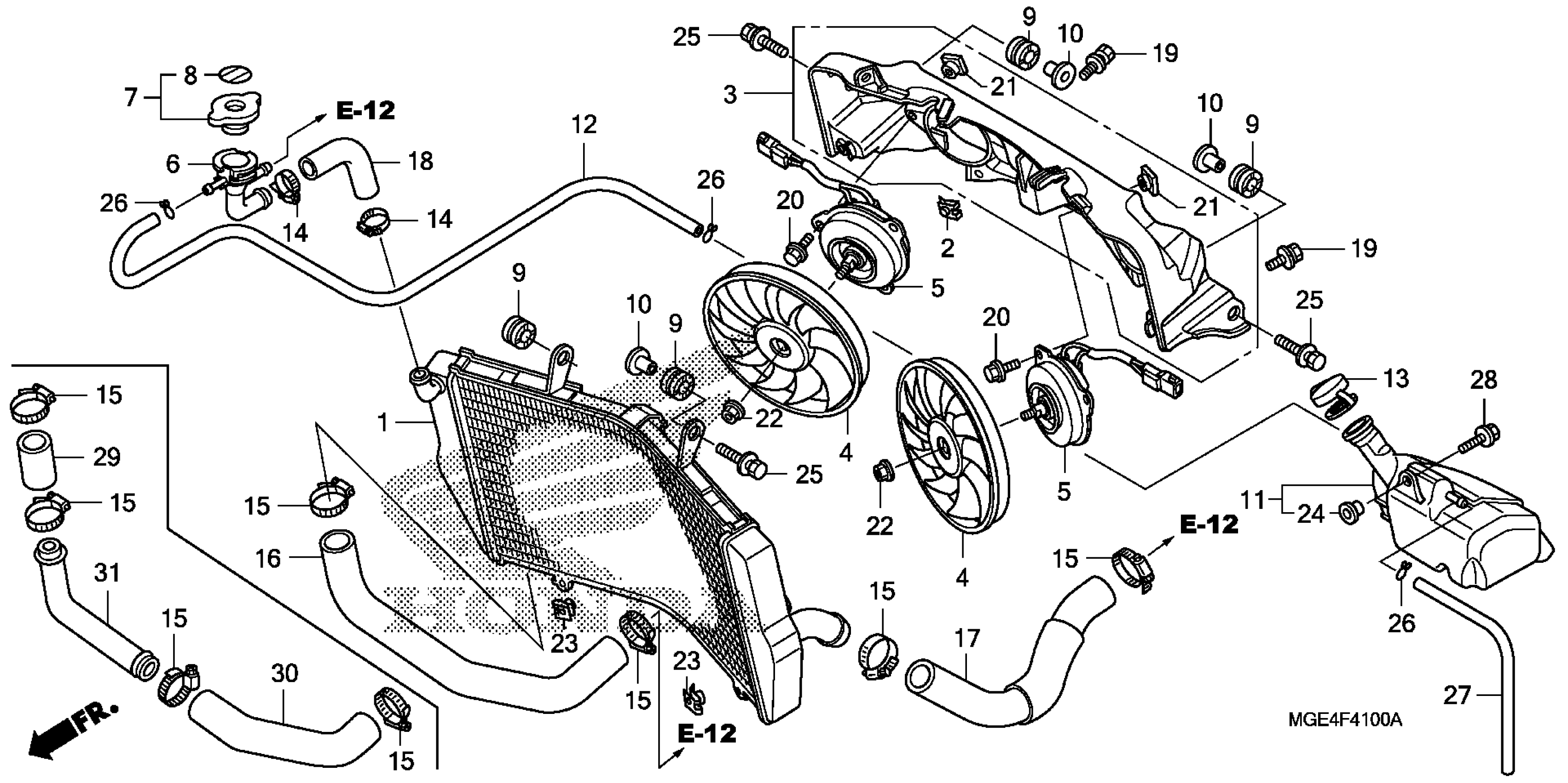 Honda VFR1200FAC (13) VFR1200F, JPN, VIN# JH2SC631-DK300001 RADIATOR Diagram