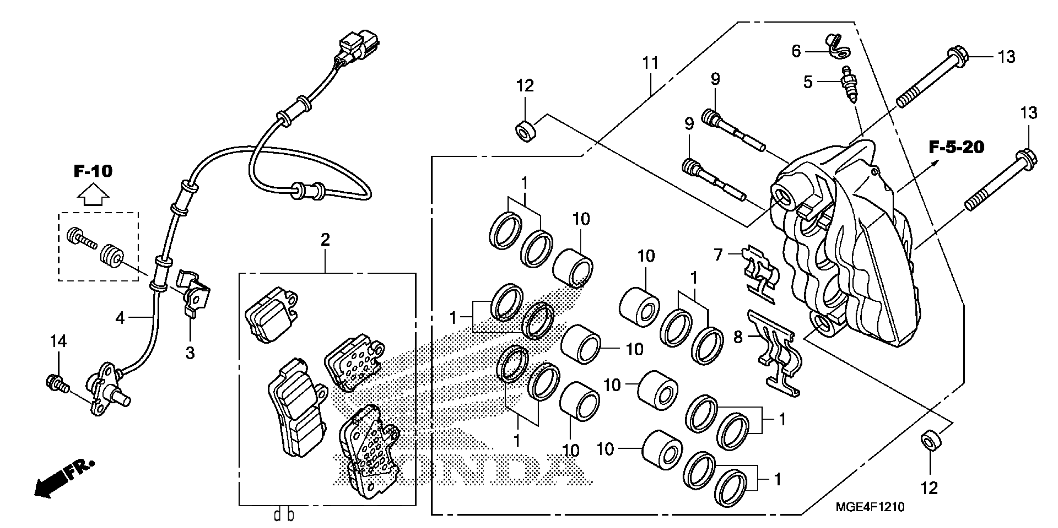 Honda VFR1200FAC (13) VFR1200F, JPN, VIN# JH2SC631-DK300001 RIGHT FRONT BRAKE CALIPER Diagram