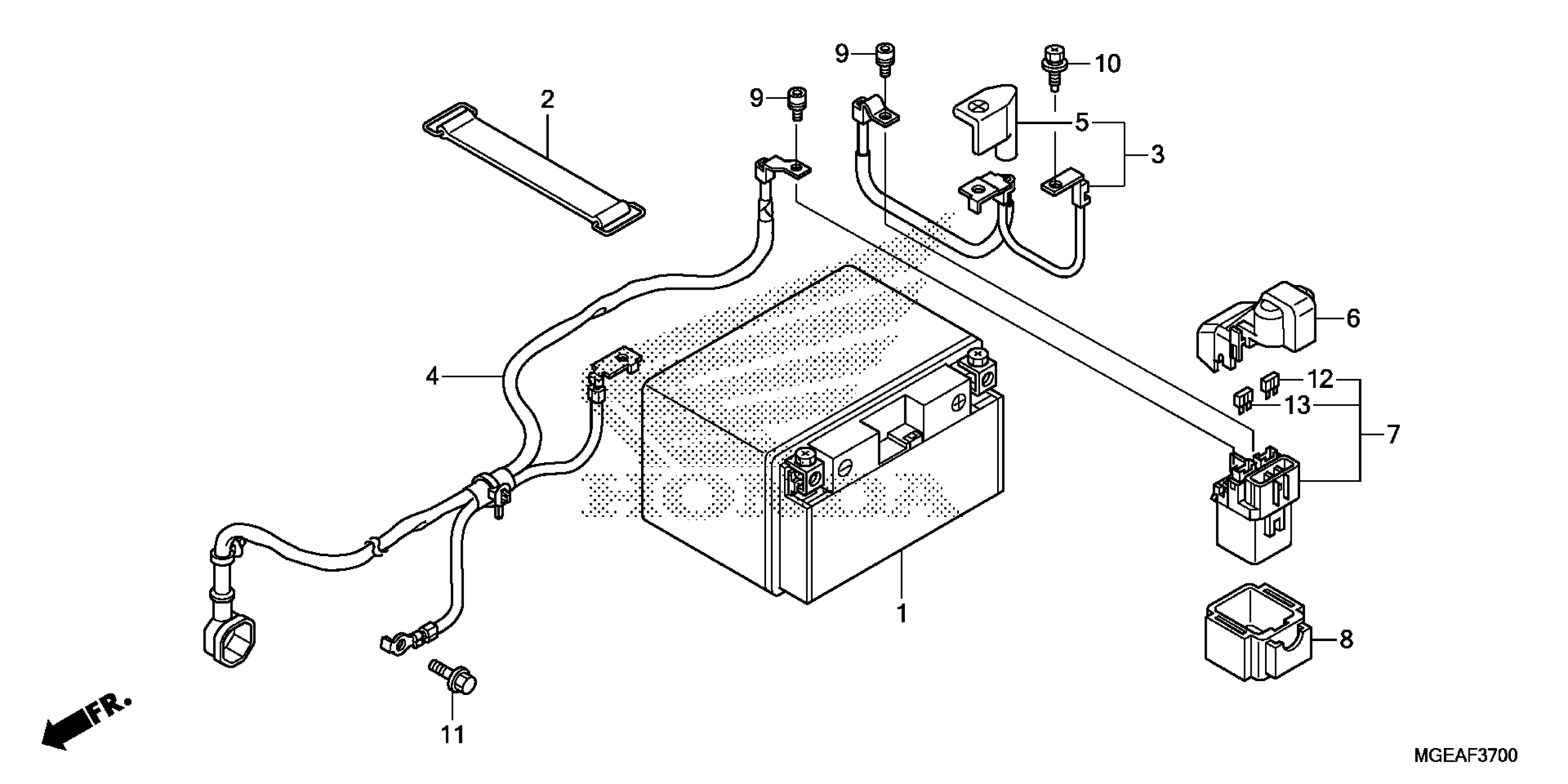 Honda VFR1200FAC (14) MOTORCYCLE, JPN, VIN# JH2SC631-EK400001 BATTERY Diagram