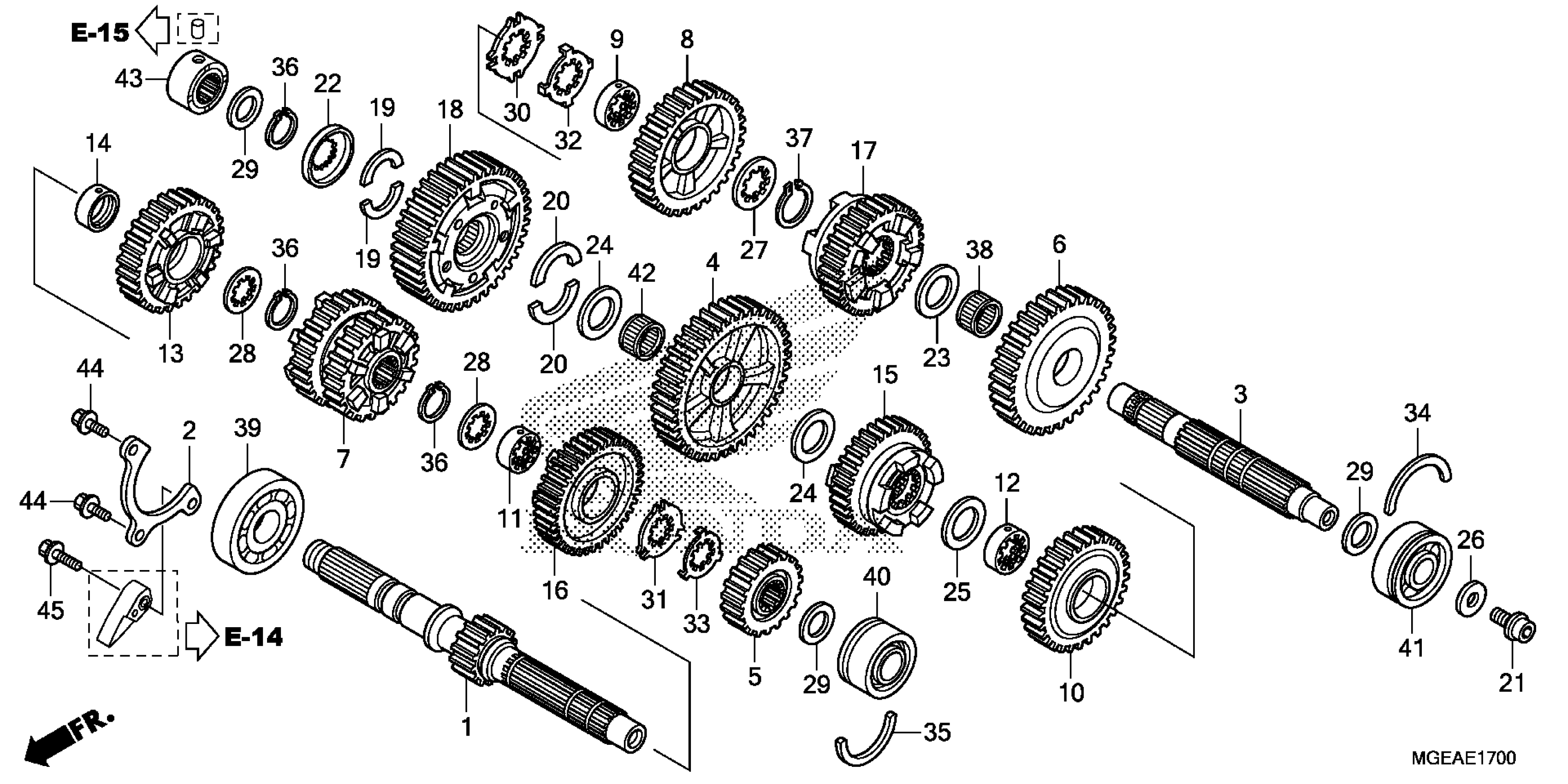 Honda VFR1200FAC (14) MOTORCYCLE, JPN, VIN# JH2SC631-EK400001 TRANSMISSION Diagram