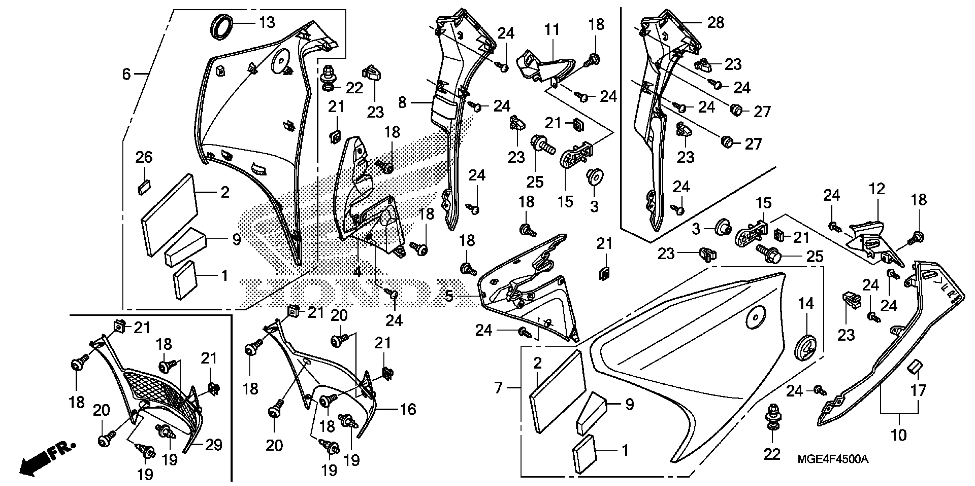 Honda VFR1200FDAC (10) VFR1200FD, JPN, VIN# JH2SC635-AK000001 TO JH2SC635-AK099999 MIDDLE COWL Diagram