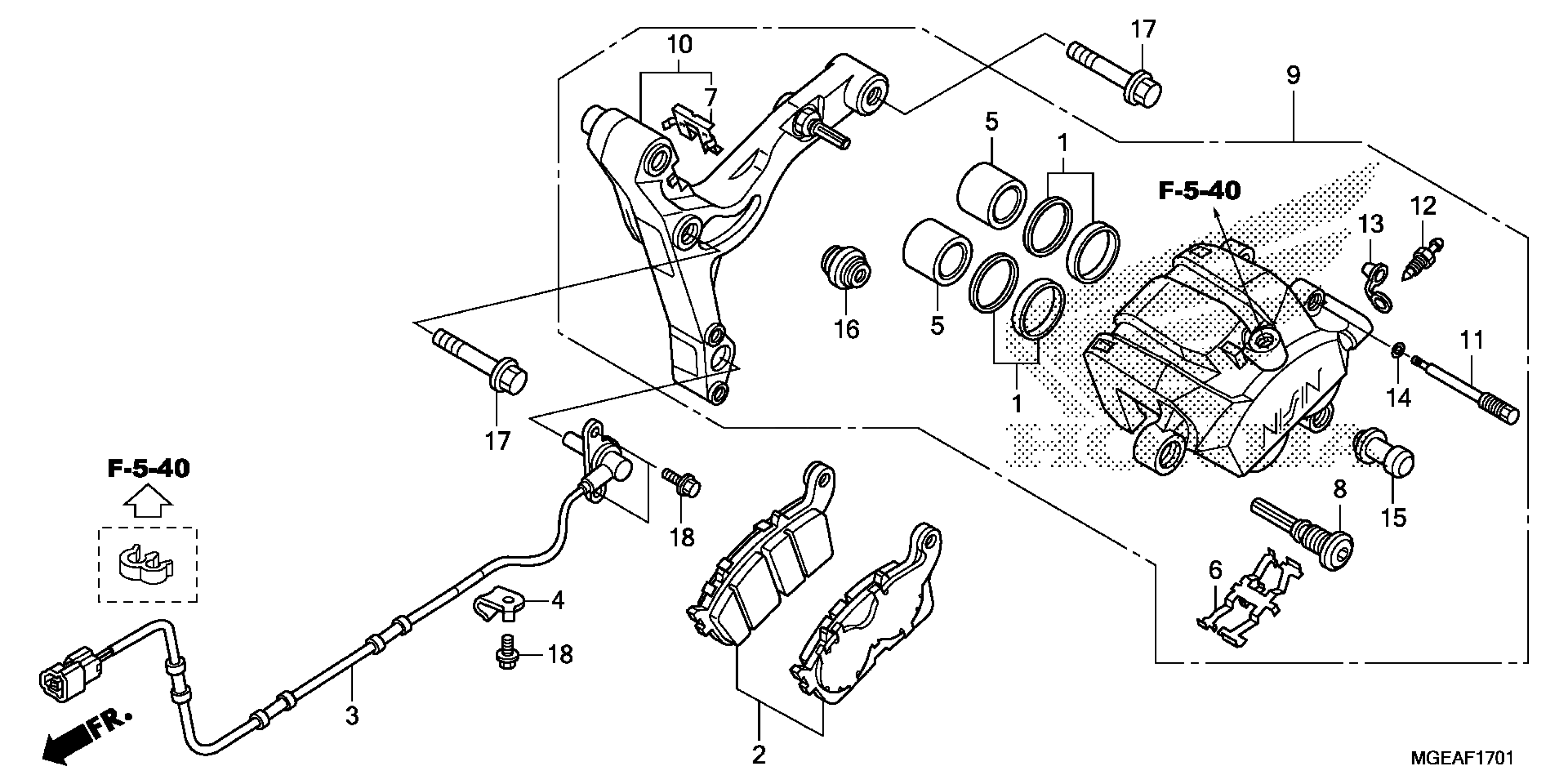 Honda VFR1200FDAC (14) MOTORCYCLE, JPN, VIN# JH2SC635-EK400001 REAR BRAKE CALIPER (2) Diagram