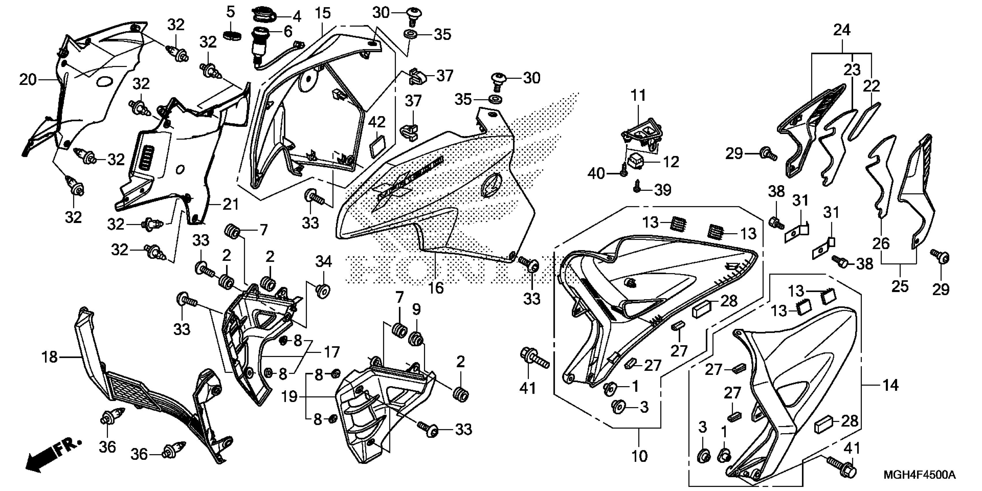 Honda VFR1200XAC (16) VFR1200X, JPN, VIN# JH2SC760-GK000001 TO JH2SC760-GK099999 MIDDLE COWL Diagram