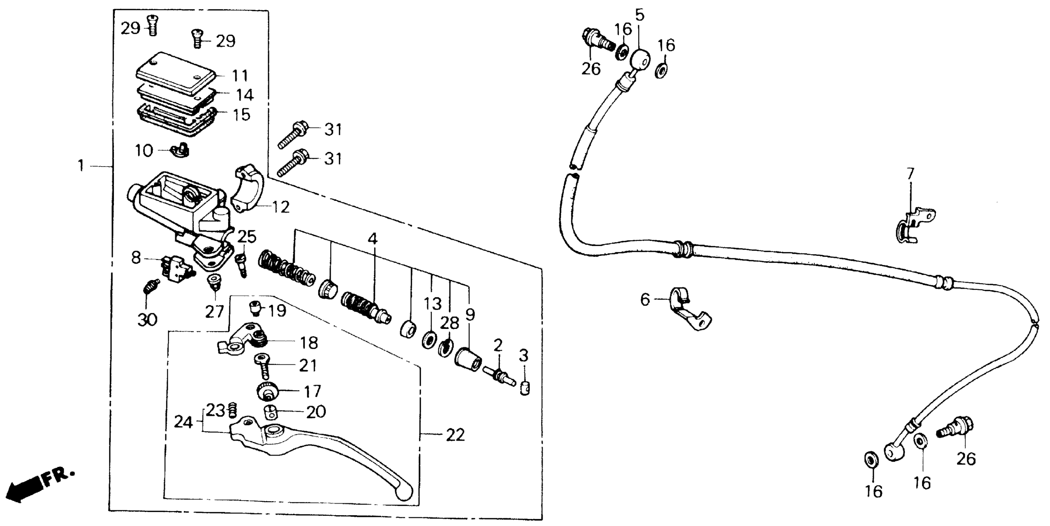 Honda VFR700F2A (87) INTERCEPTOR, JPN, VIN# JH2RC262-HM100001 TO JH2RC262-HM101781 CLUTCH MASTER CYLINDER 87 Diagram