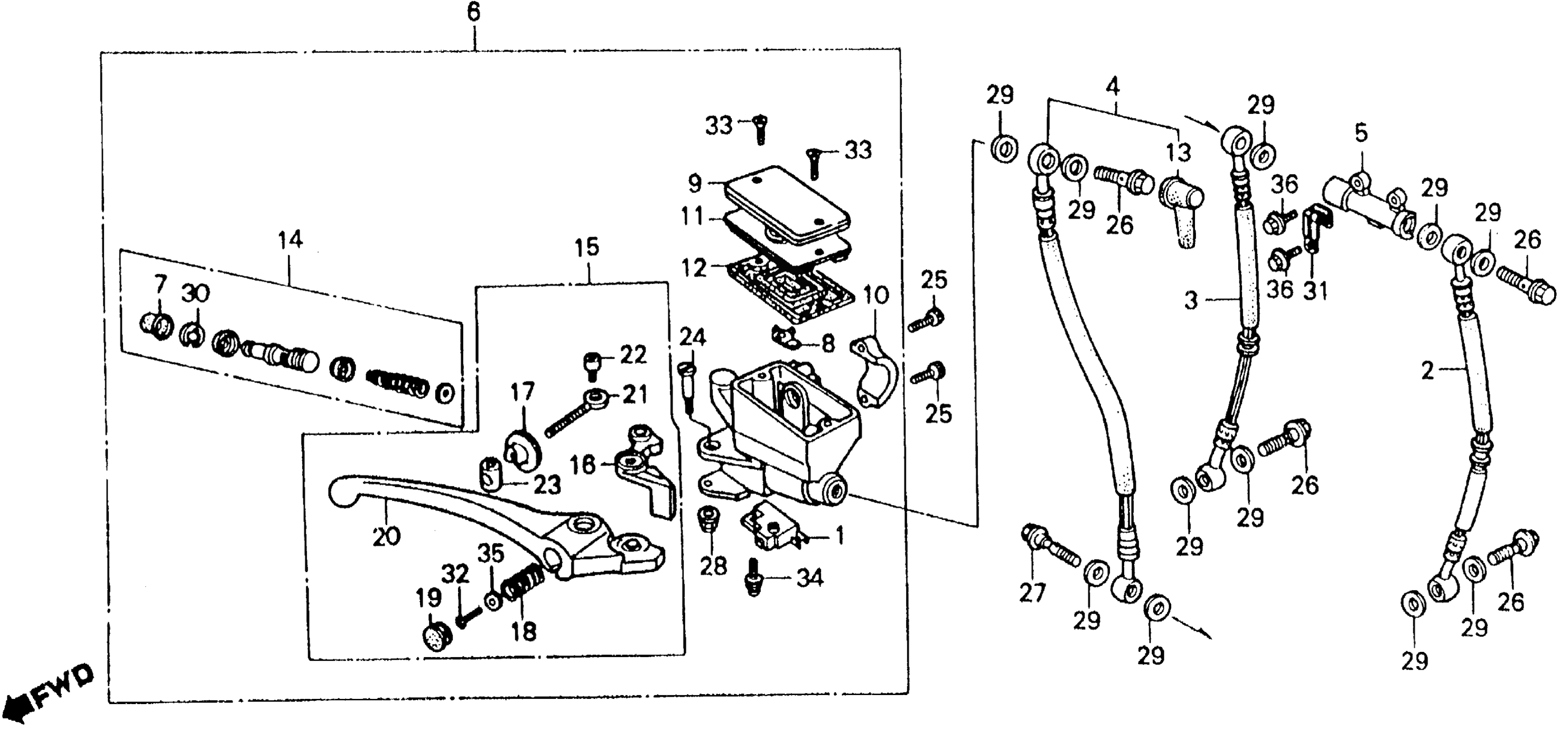 Honda VFR750FA (86) 750 INTERCEPTOR, JPN, VIN# JH2RC240-GM000008 FR. BRAKE MASTER CYL. Diagram