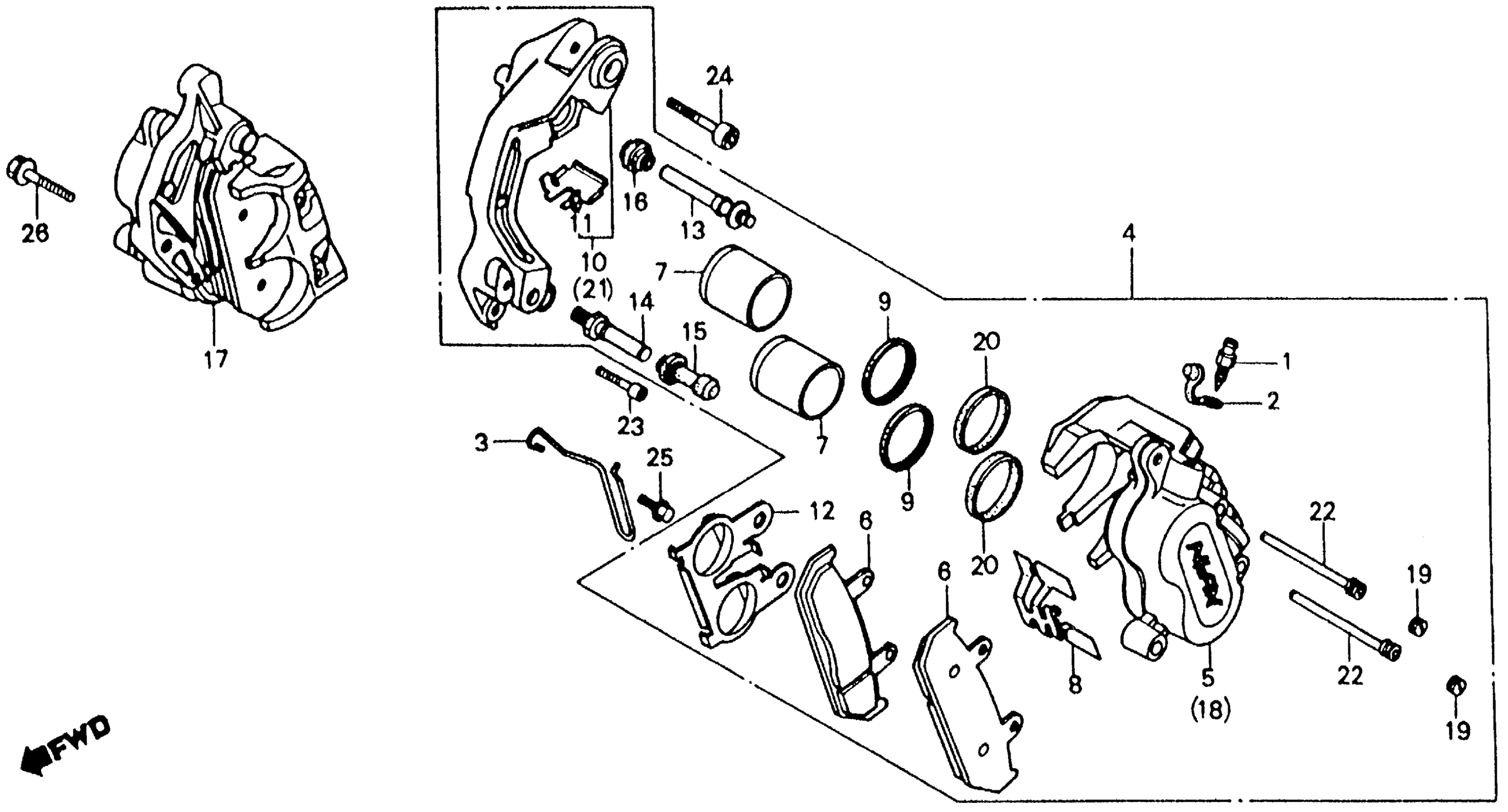 Honda VFR750FA (86) 750 INTERCEPTOR, JPN, VIN# JH2RC240-GM000008 FRONT BRAKE CALIPER Diagram