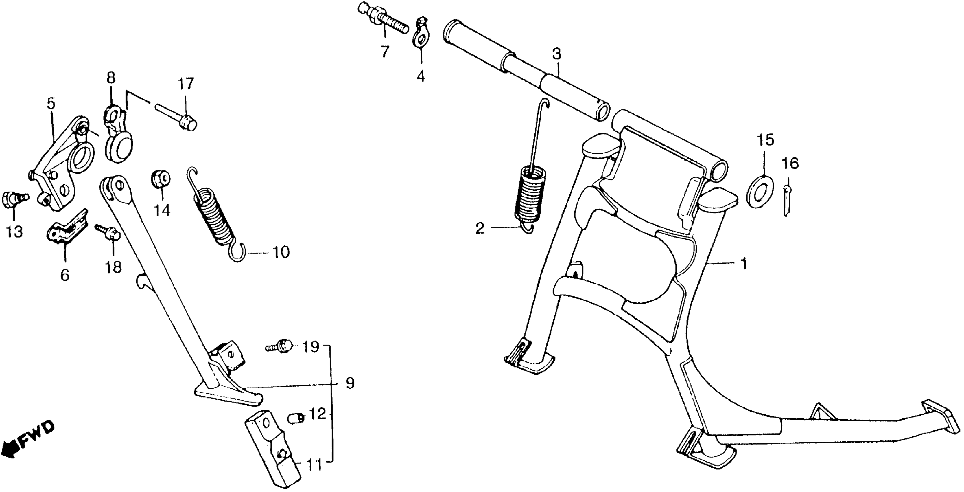 Honda VFR750FA (86) 750 INTERCEPTOR, JPN, VIN# JH2RC240-GM000008 MAIN STAND + SIDE STAND Diagram