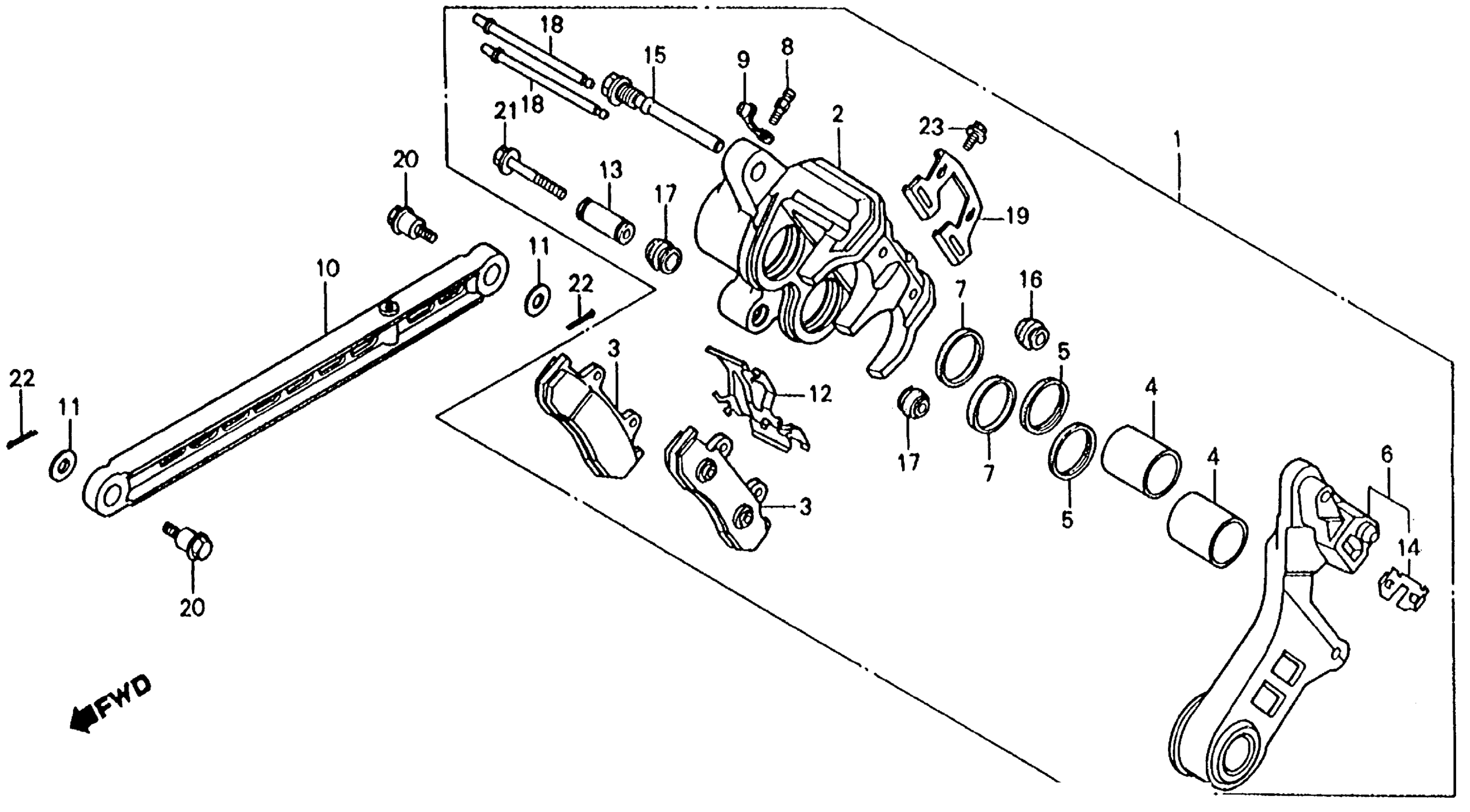 Honda VFR750FA (86) 750 INTERCEPTOR, JPN, VIN# JH2RC240-GM000008 REAR BRAKE CALIPER Diagram