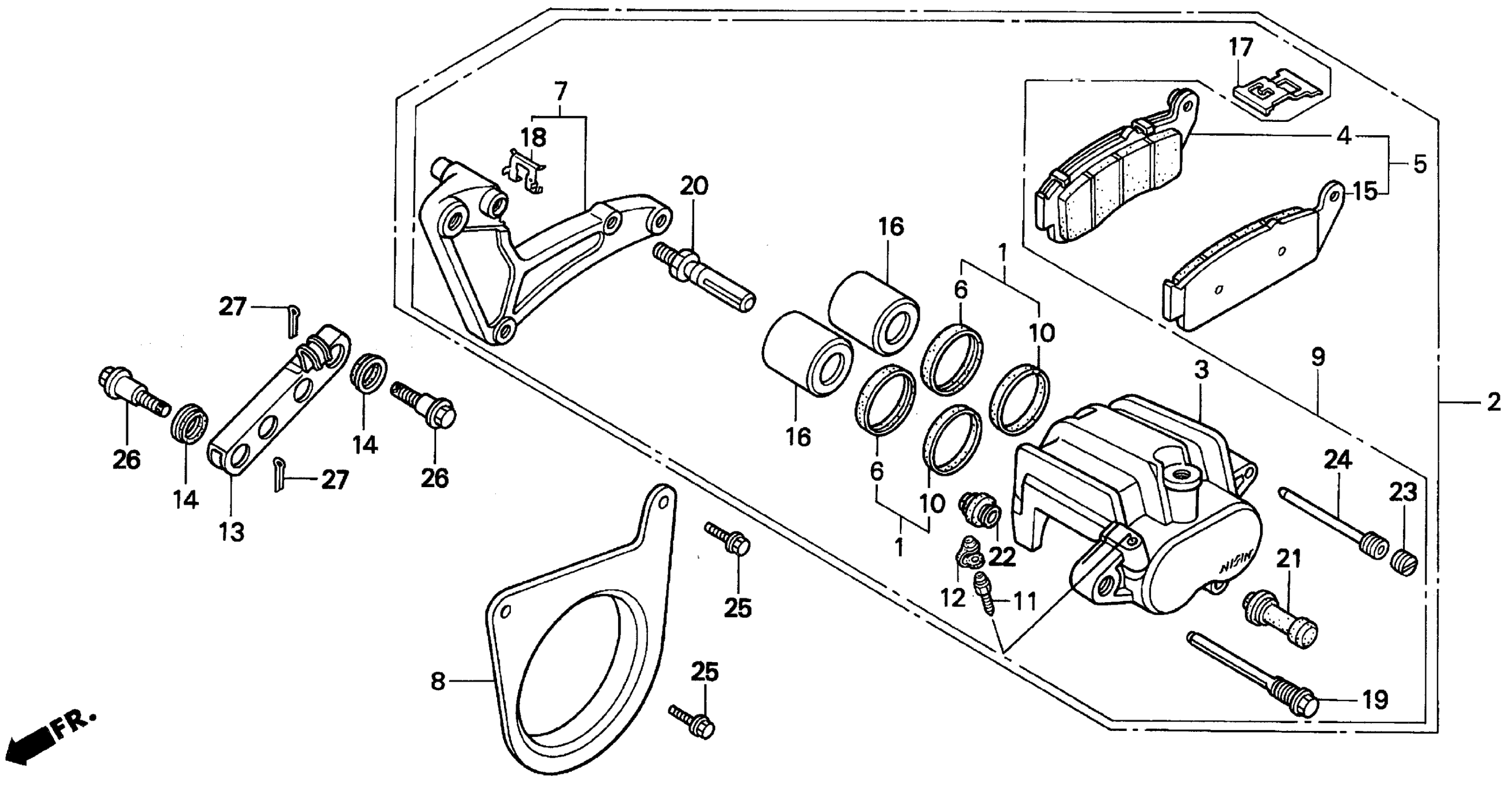 Honda VFR750FA (91) VFR, JPN, VIN# JH2RC360-MM100001 TO JH2RC360-MM101581 REAR BRAKE CALIPER Diagram