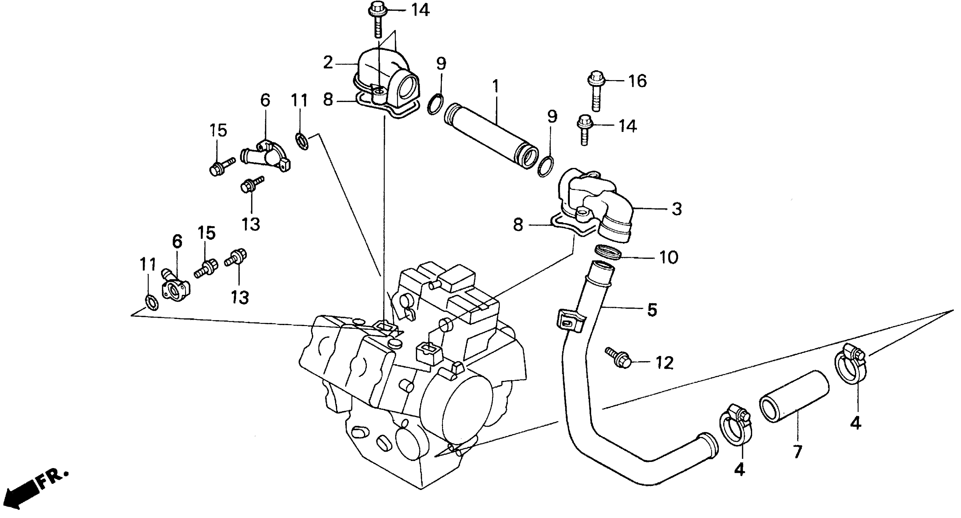 Honda VFR750FA (96) VFR, JPN, VIN# JH2RC360-TM600001 WATER PIPE Diagram