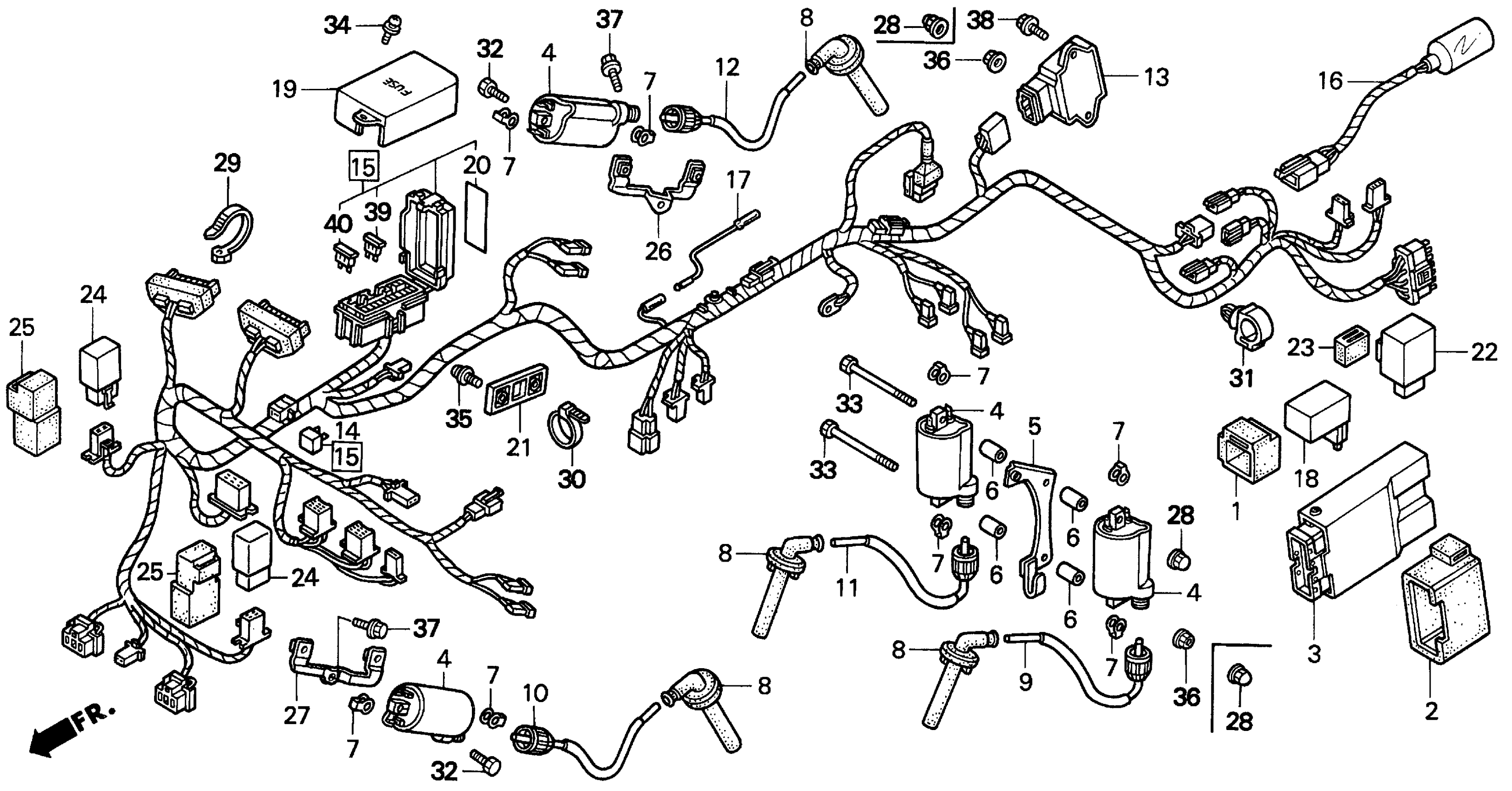 Honda VFR750FA (97) VFR, JPN, VIN# JH2RC360-VM700001 WIRE HARNESS 94-97 Diagram