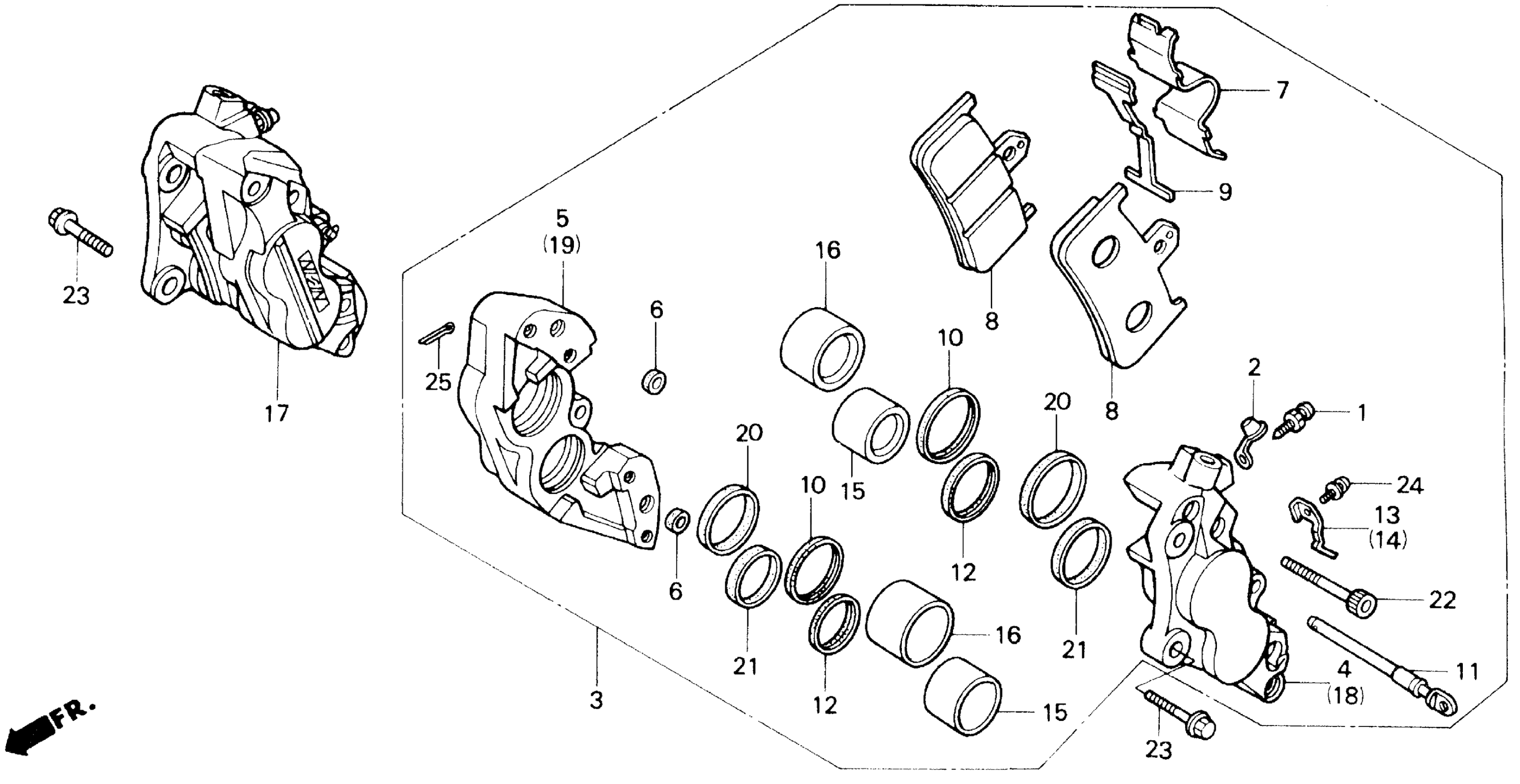 Honda VFR750RA (90) RC30, JPN, VIN# JH2RC300-LM200001 FRONT BRAKE CALIPER Diagram