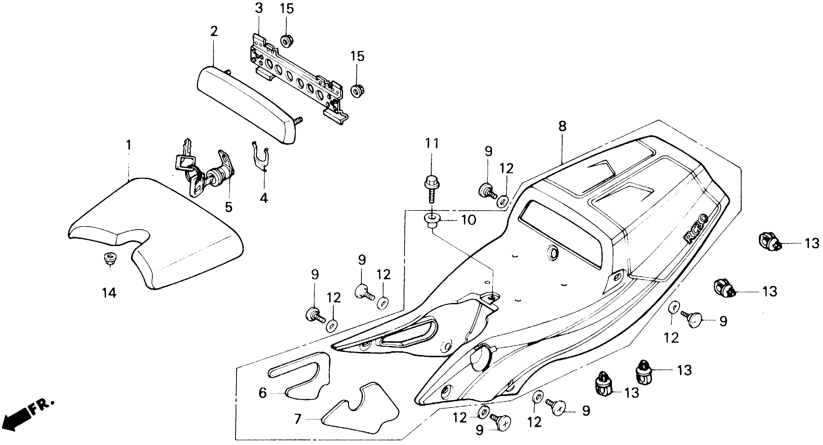 Honda VFR750RA (90) RC30, JPN, VIN# JH2RC300-LM200001 SEAT Diagram