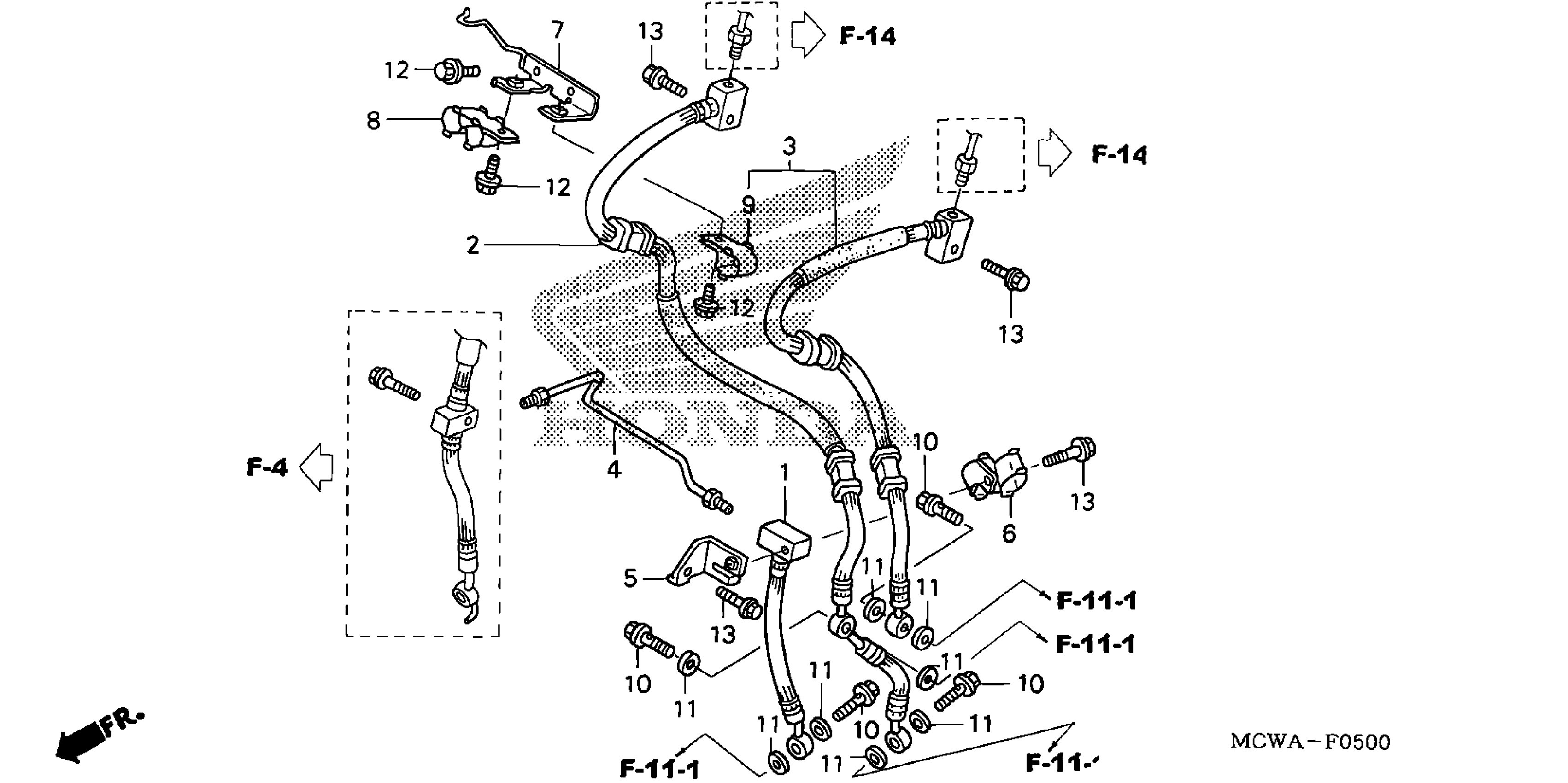 Honda VFR8002AC (07) INTERCEPTOR, JPN, VIN# JH2RC466-7M900001 TO JH2RC466-7M909999 FRONT BRAKE HOSE Diagram
