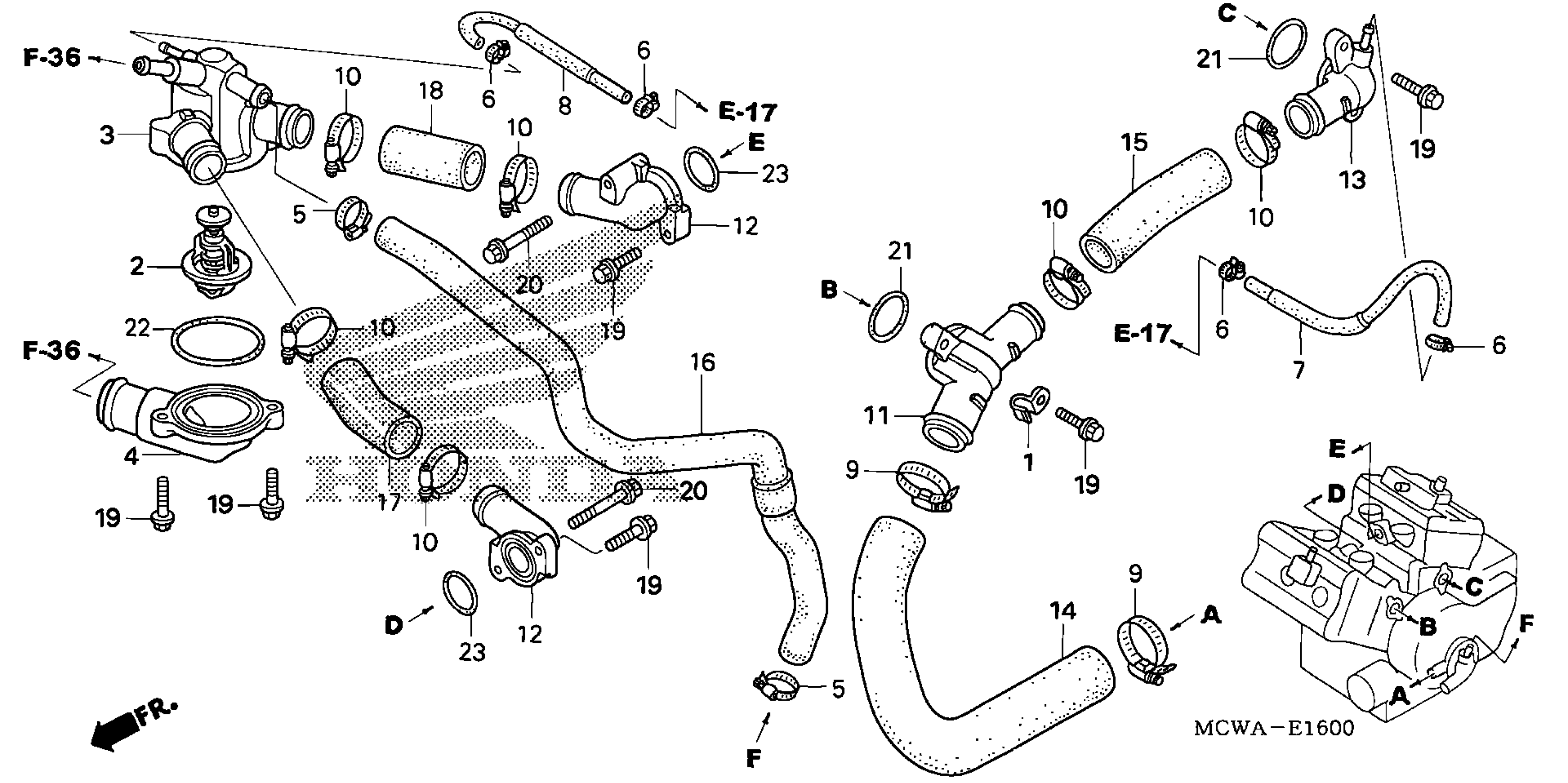 Honda VFR800A (09) INTERCEPTOR, JPN, VIN# JH2RC460-9K100001 WATER PIPE Diagram