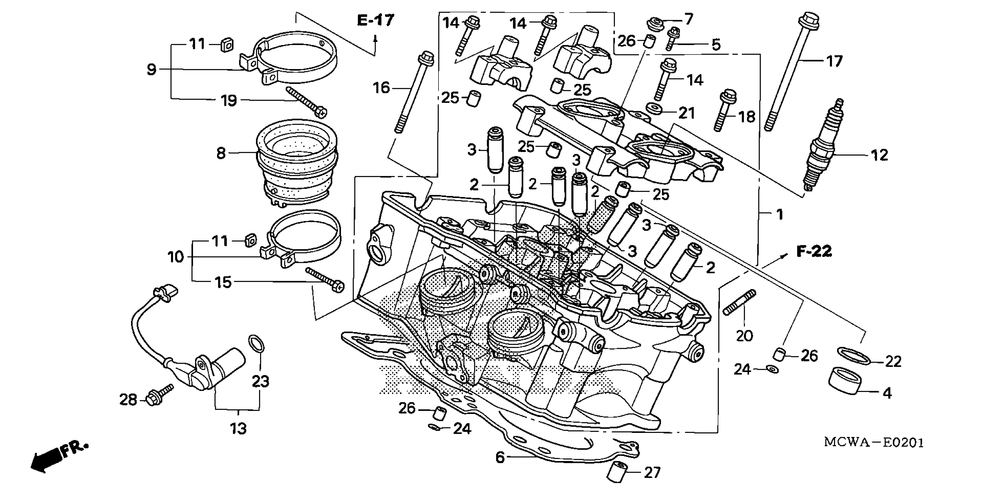 Honda VFR800AAC (07) INTERCEPTOR ABS, JPN, VIN# JH2RC464-7M900001 TO JH2RC464-7M909999 CYLINDER HEAD (RR.) Diagram