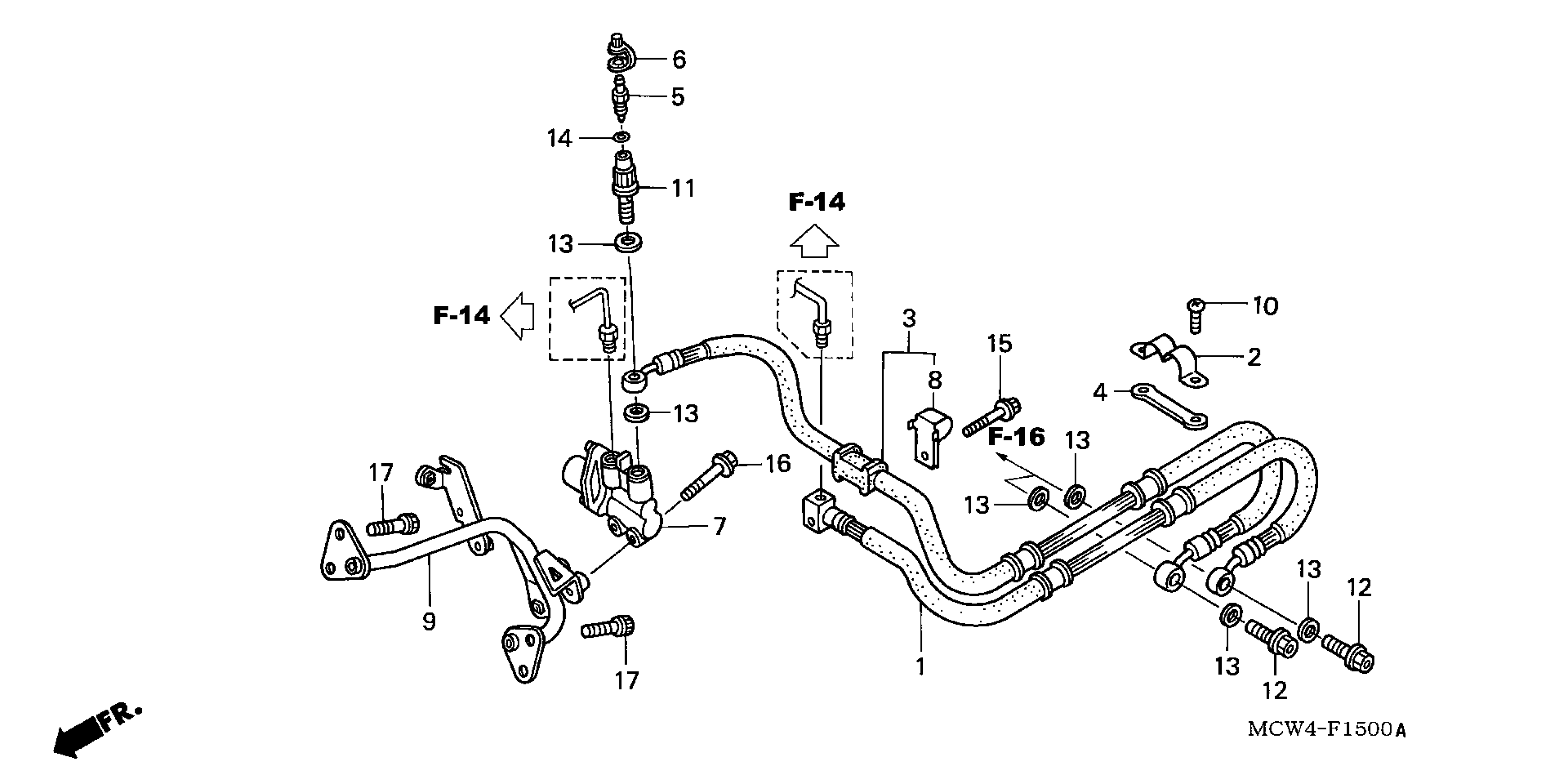 Honda VFR800AC (03) INTERCEPTOR, JPN, VIN# JH2RC461-3M500001 TO JH2RC461-3M599999 REAR BRAKE HOSE Diagram
