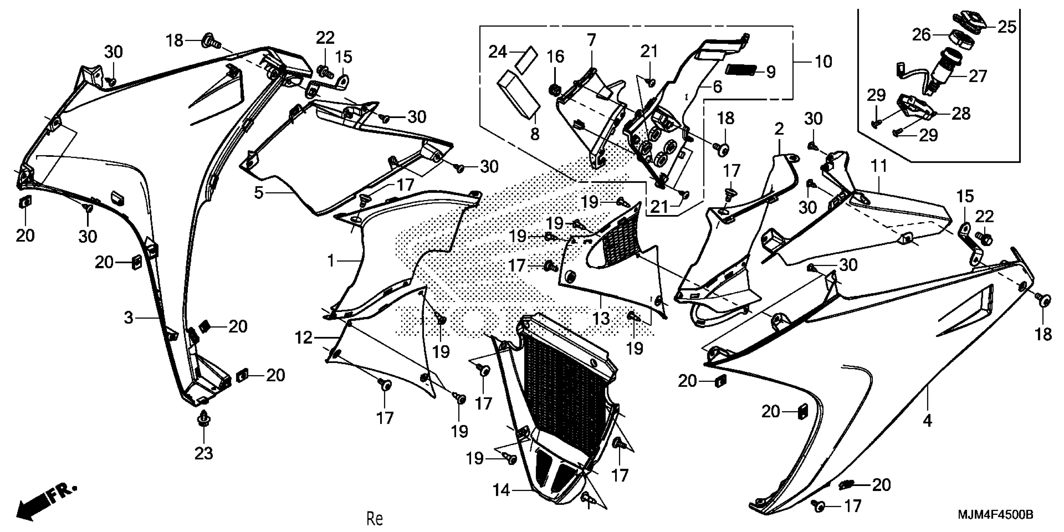 Honda VFR800FD2AC (15) INTERCEPTOR DELUXE, JPN, VIN# JH2RC795-FK100001 TO JH2RC795-FK199999 MIDDLE COWL Diagram