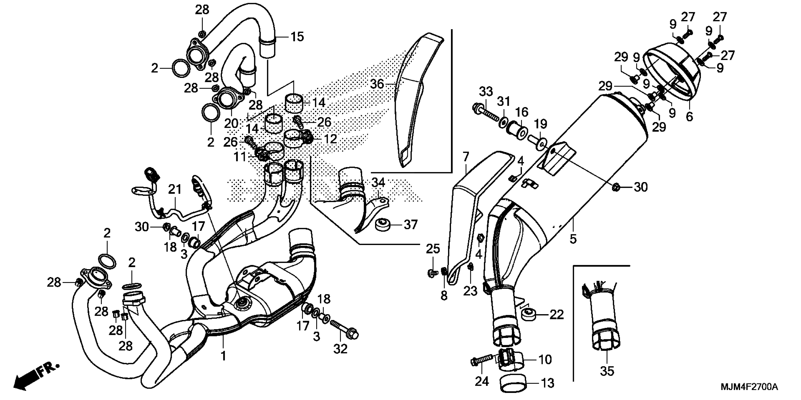 Honda VFR800FD2AC (15) INTERCEPTOR DELUXE, JPN, VIN# JH2RC795-FK100001 TO JH2RC795-FK199999 MUFFLER Diagram