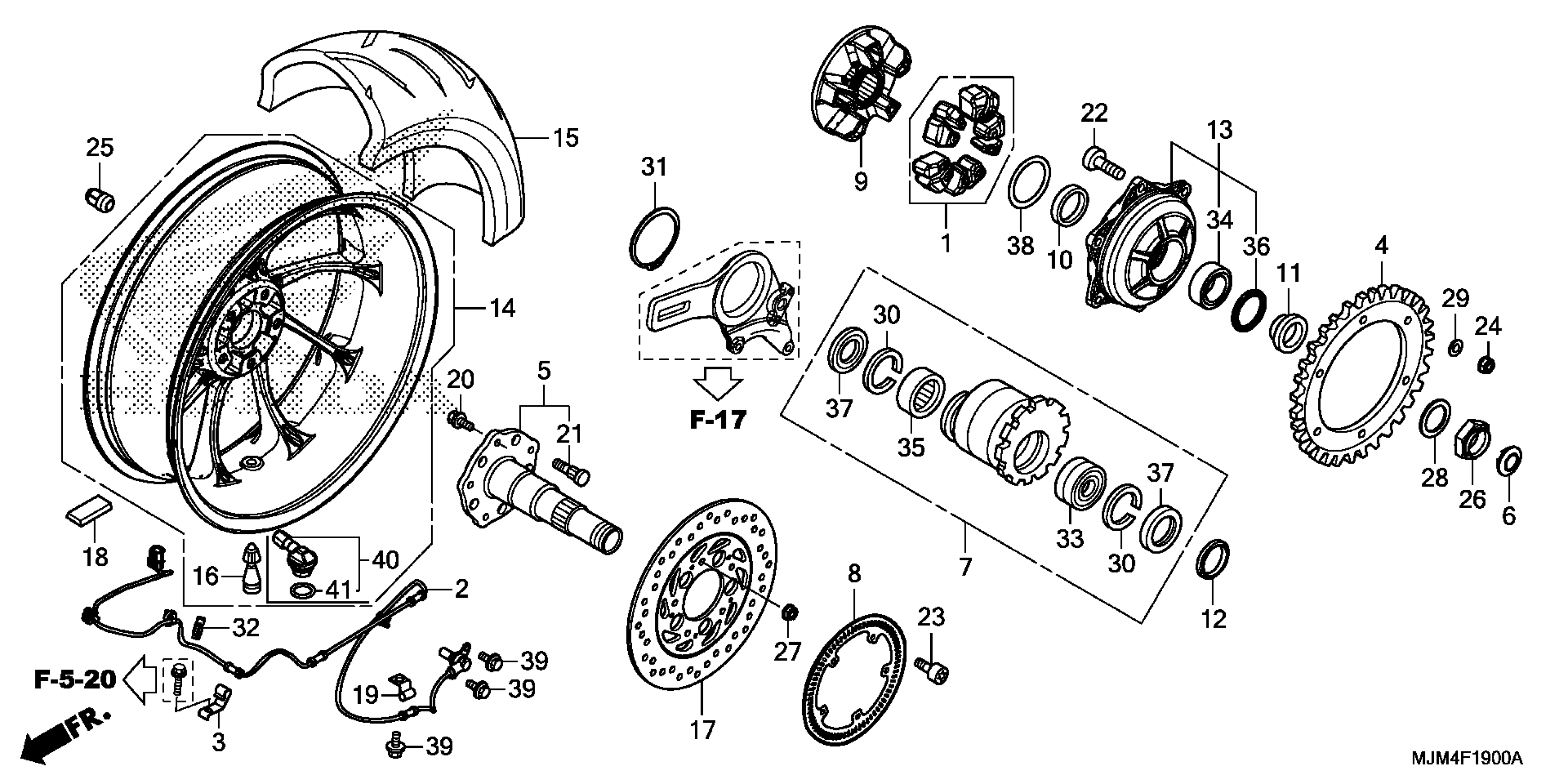 Honda VFR800FD2AC (15) INTERCEPTOR DELUXE, JPN, VIN# JH2RC795-FK100001 TO JH2RC795-FK199999 REAR WHEEL Diagram