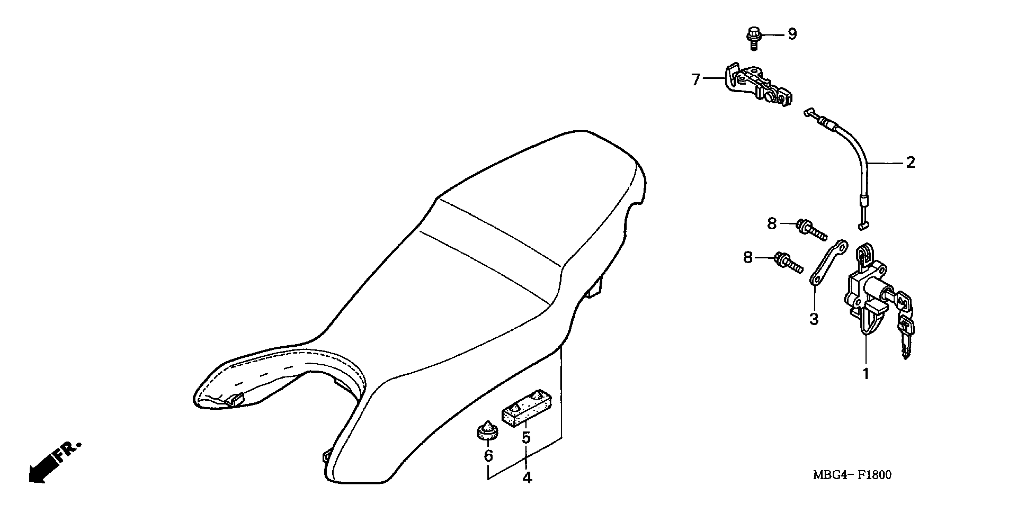 Honda VFR800FIAC (99) INTERCEPTOR, JPN, VIN# JH2RC461-XM100001 SEAT Diagram
