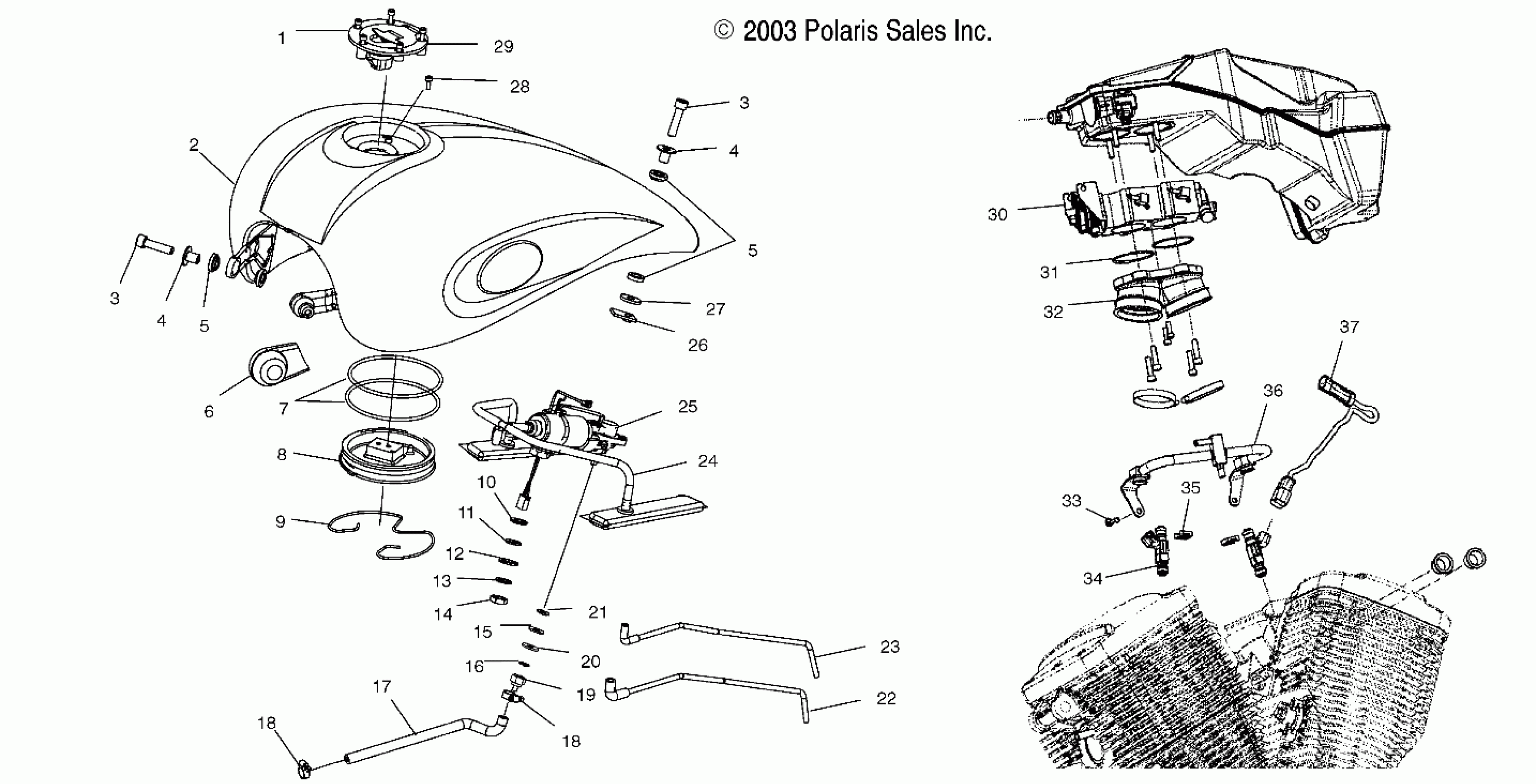 FUEL SYSTEM, FUEL TANK, LINES and THROTTLE BODY - V04GB16/NC16/ALL OPTIONS (4989548954A13)