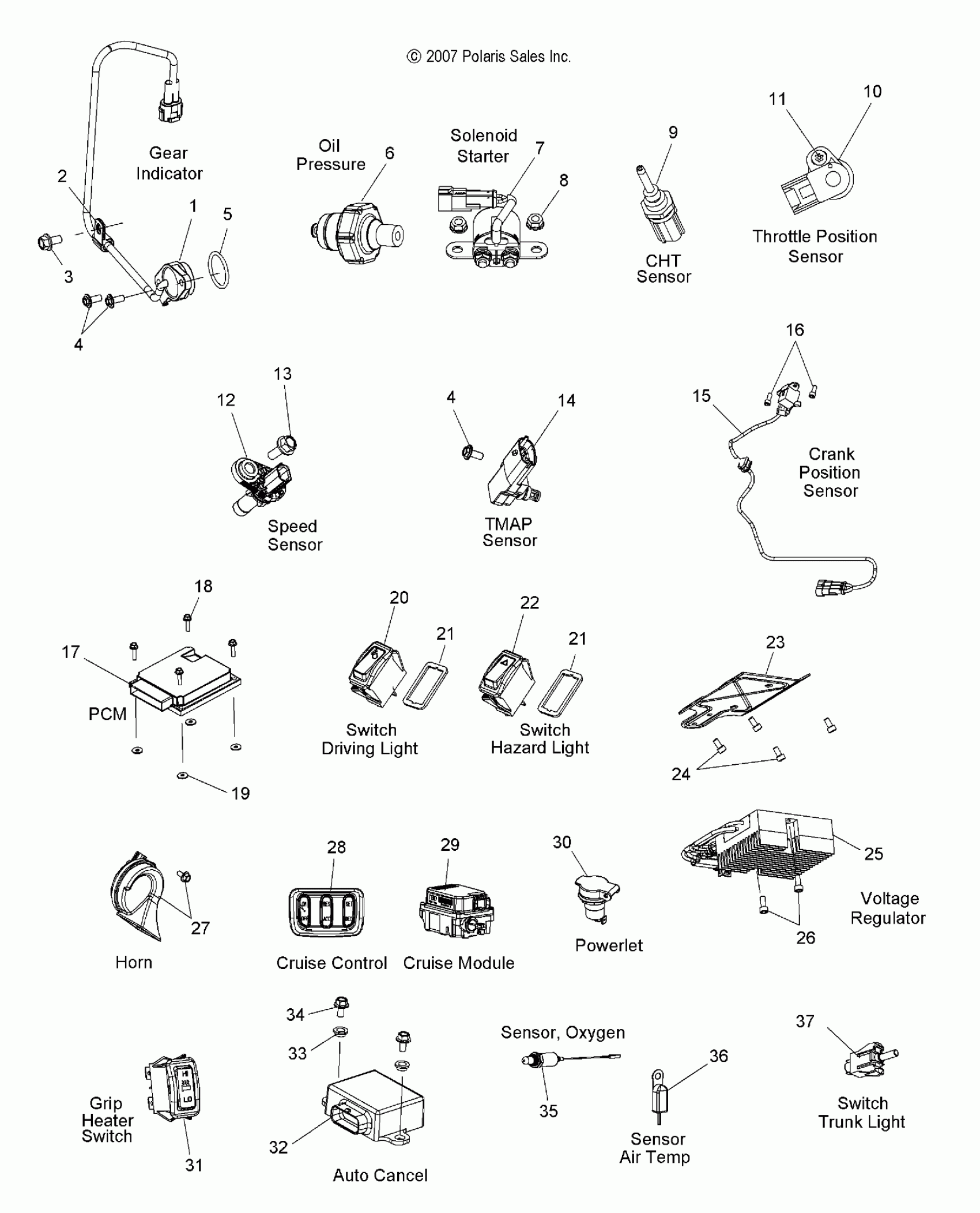ELECTRICAL, SWITCHES, SENSORS and COMPONENTS - V08SB36/SD36 ALL OPTIONS (49VICSWITCHES08VN)