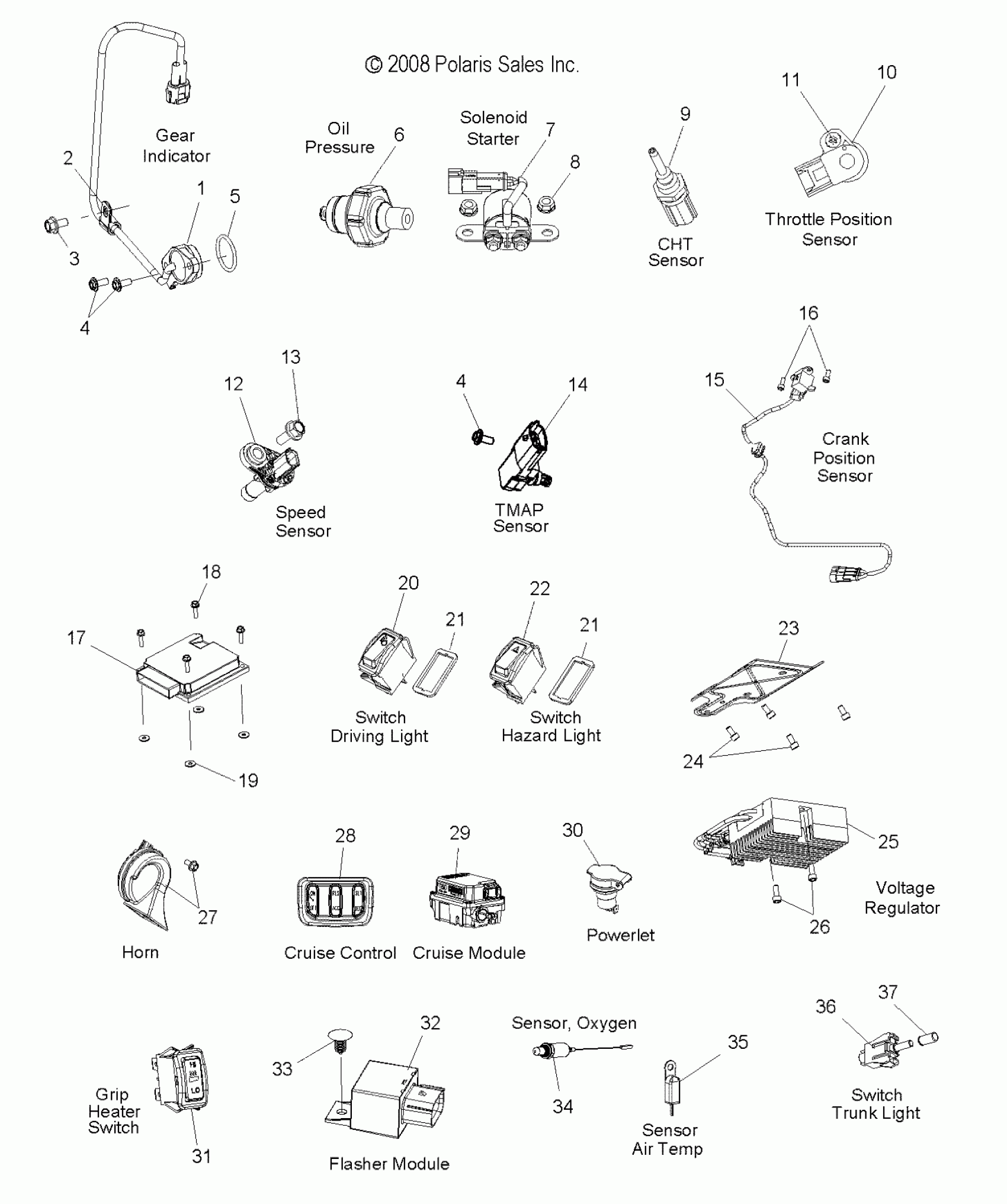 ELECTRICAL, SWITCHES, SENSORS and COMPONENTS - V09SB36/SC36/SD36/SZ36 ALL OPTIONS (49VICSWITCHES09VN)