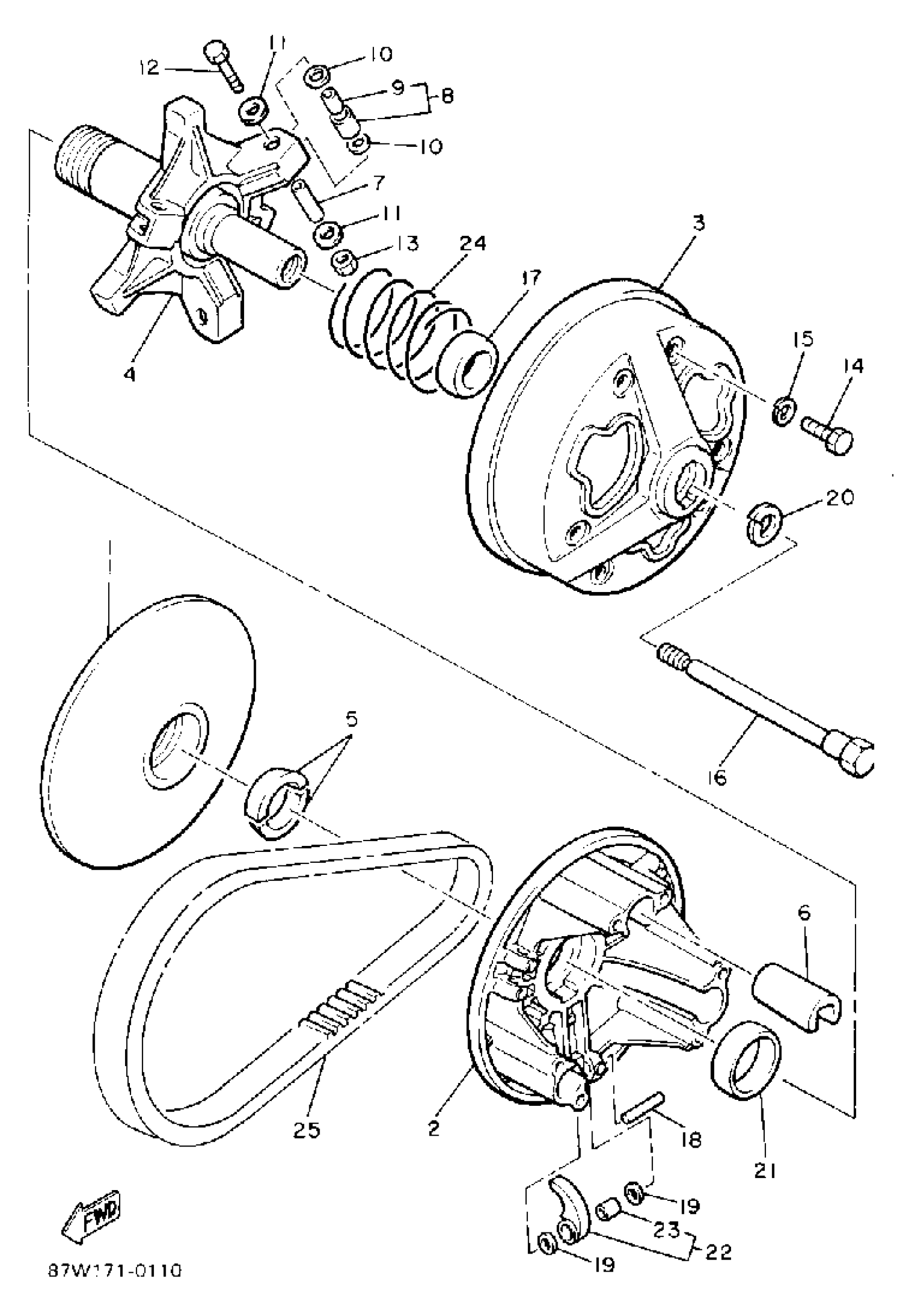 Yamaha VK540EP (VK540) 1990 PRIMARY SHEAVE Diagram