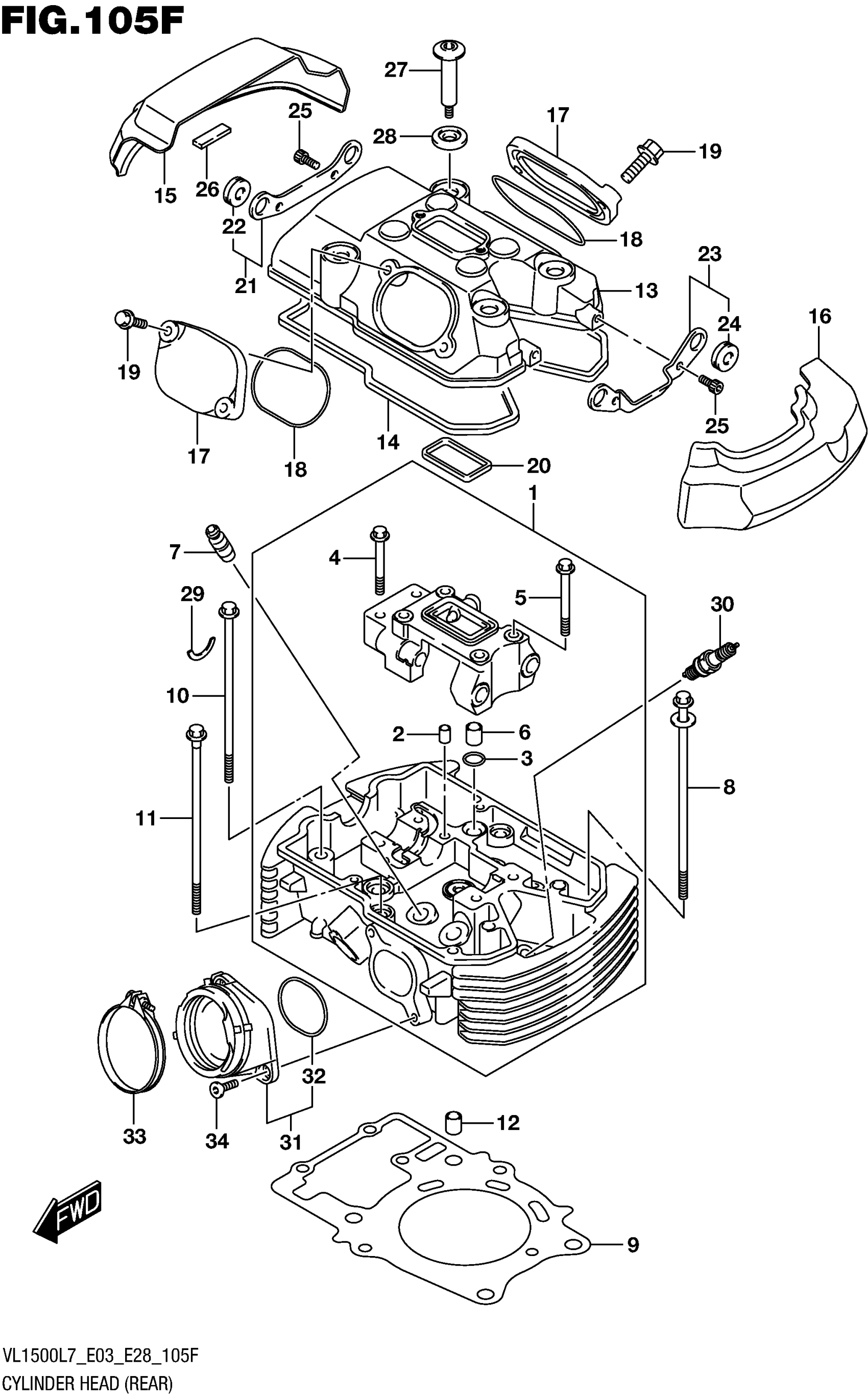 Suzuki VL1500BL7 (2017) CYLINDER HEAD (REAR) (VL1500TL7 E28) Diagram