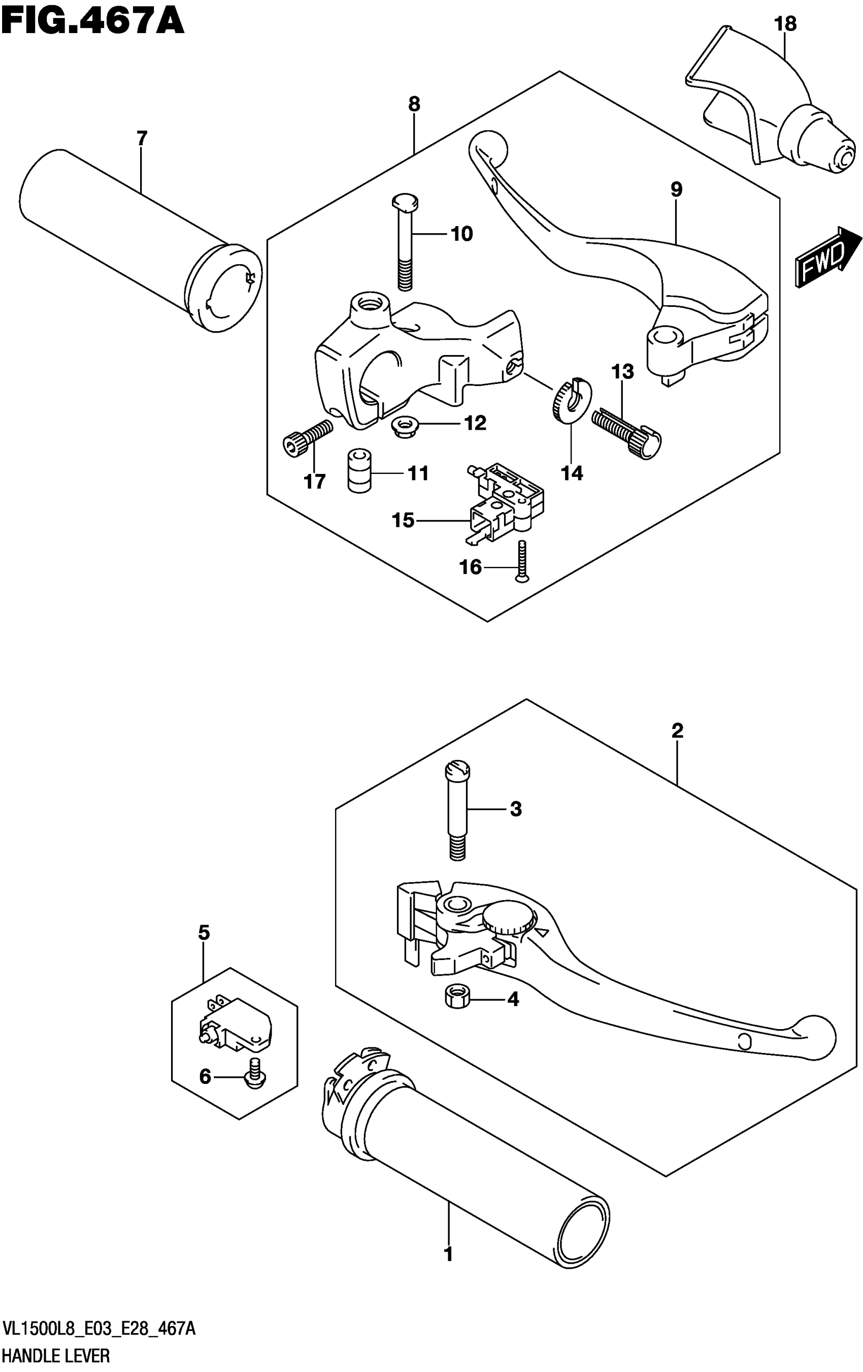 Suzuki VL1500BL8 (2018) HANDLE LEVER (VL1500BL8 E03) Diagram