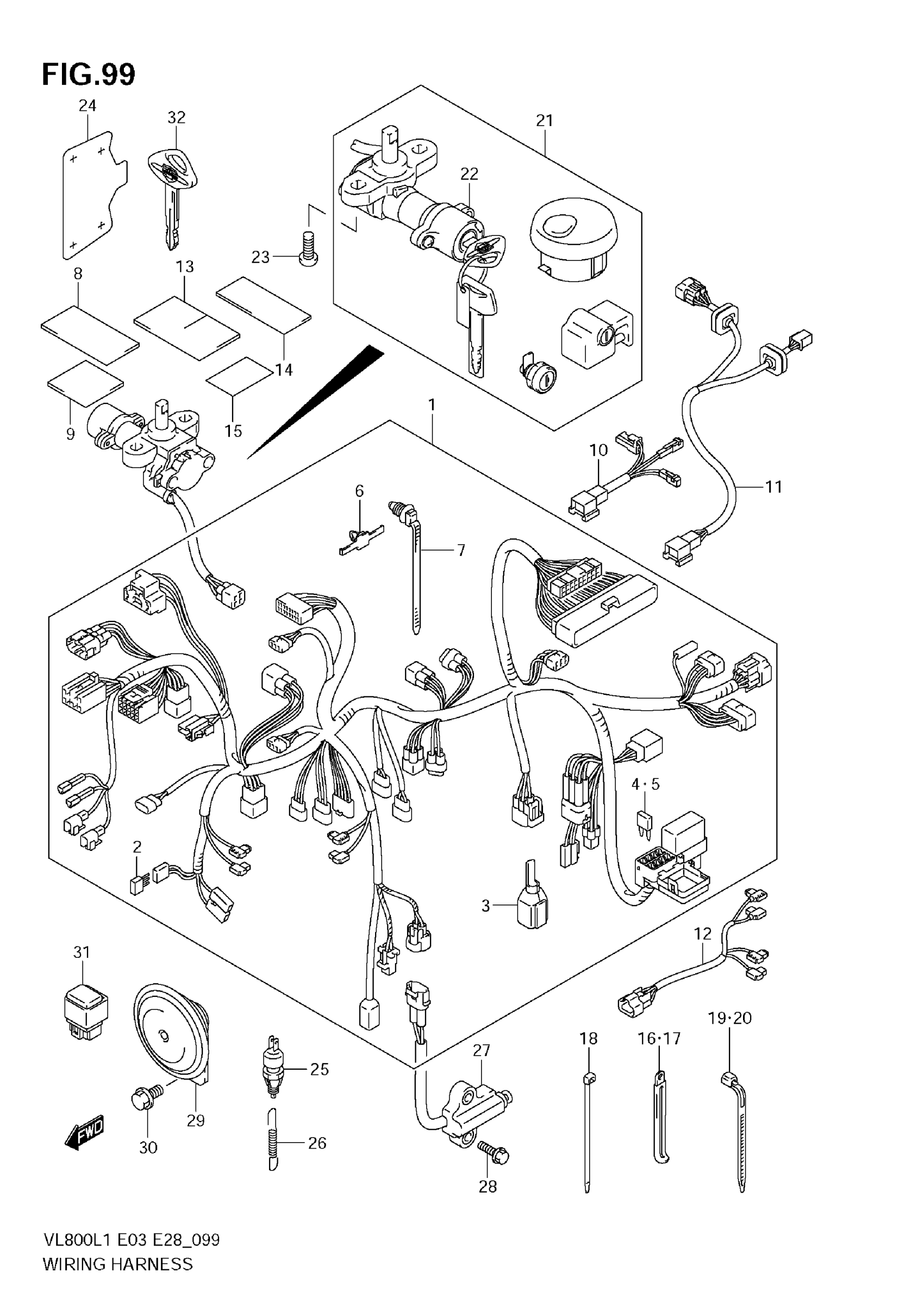 Suzuki VL800CL1 (2011) WIRING HARNESS (VL800 E33) Diagram