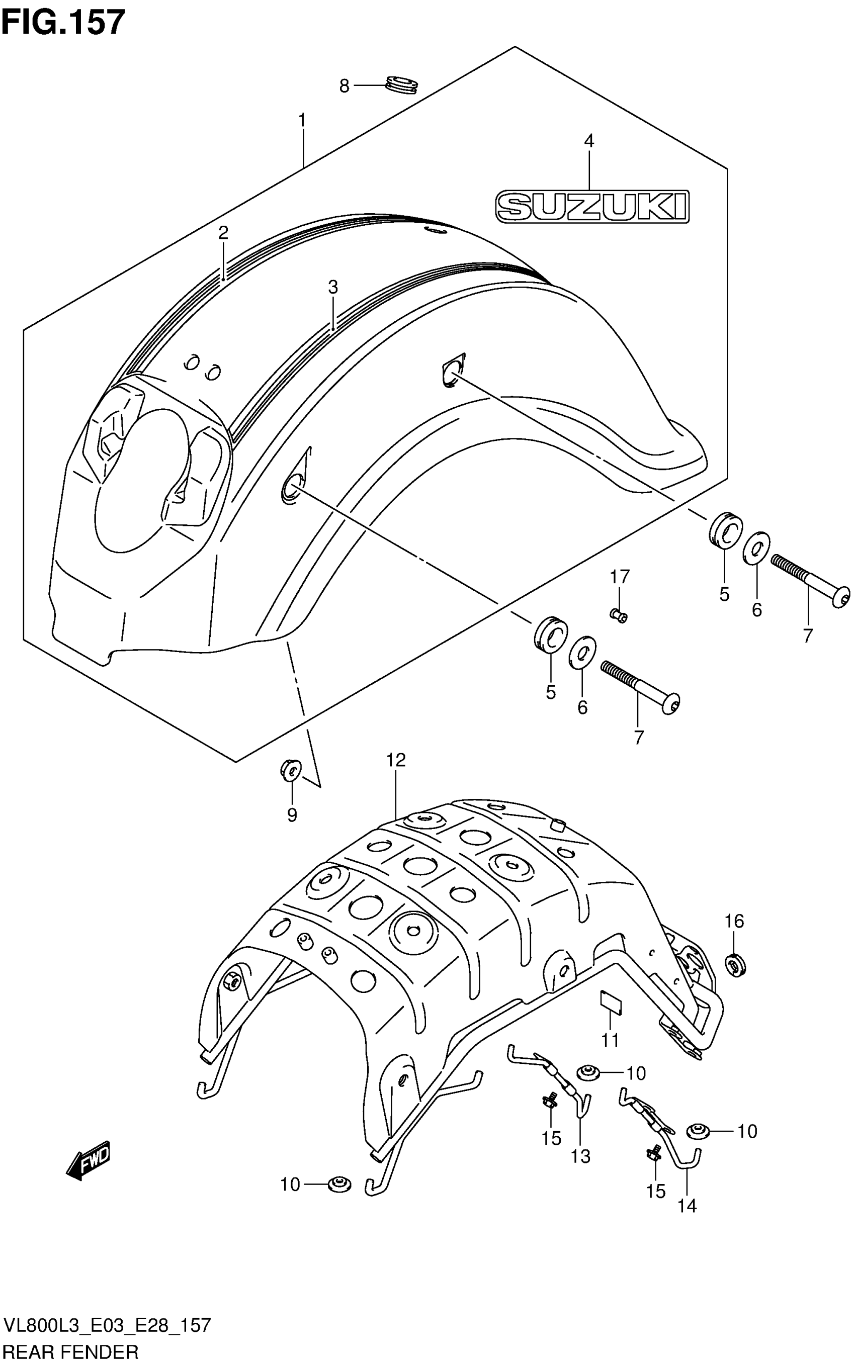 Suzuki VL800CL3 (2013) REAR FENDER (VL800CL3 E28) Diagram