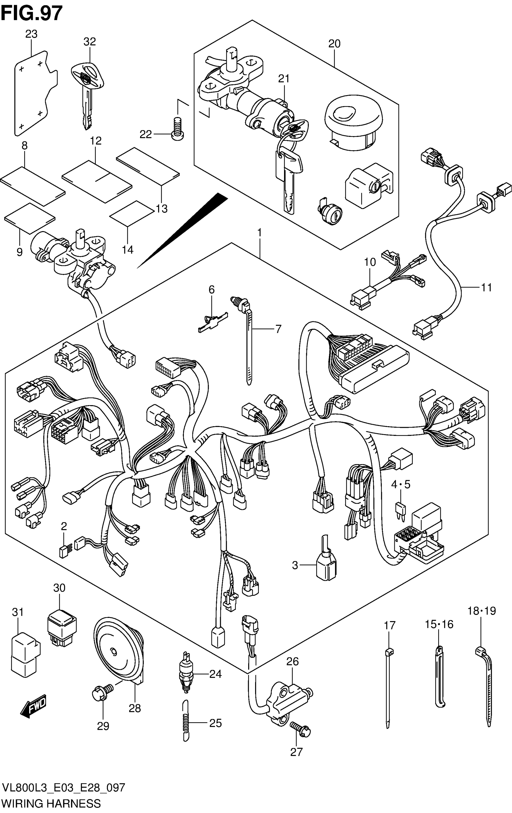 Suzuki VL800CL3 (2013) WIRING HARNESS (VL800L3 E03) Diagram