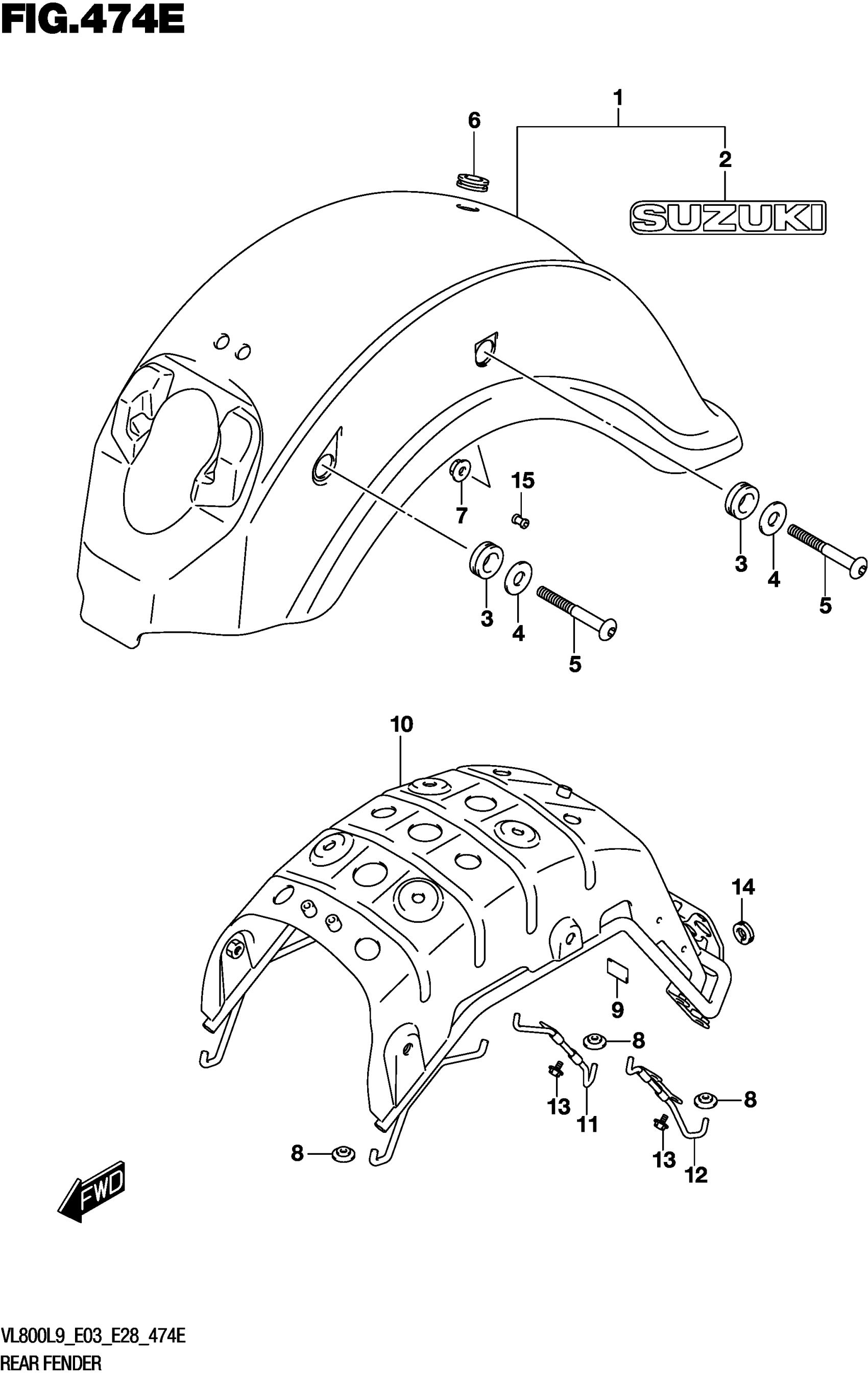 Suzuki VL800L9 (2019) REAR FENDER (VL800TL9 E28) Diagram